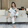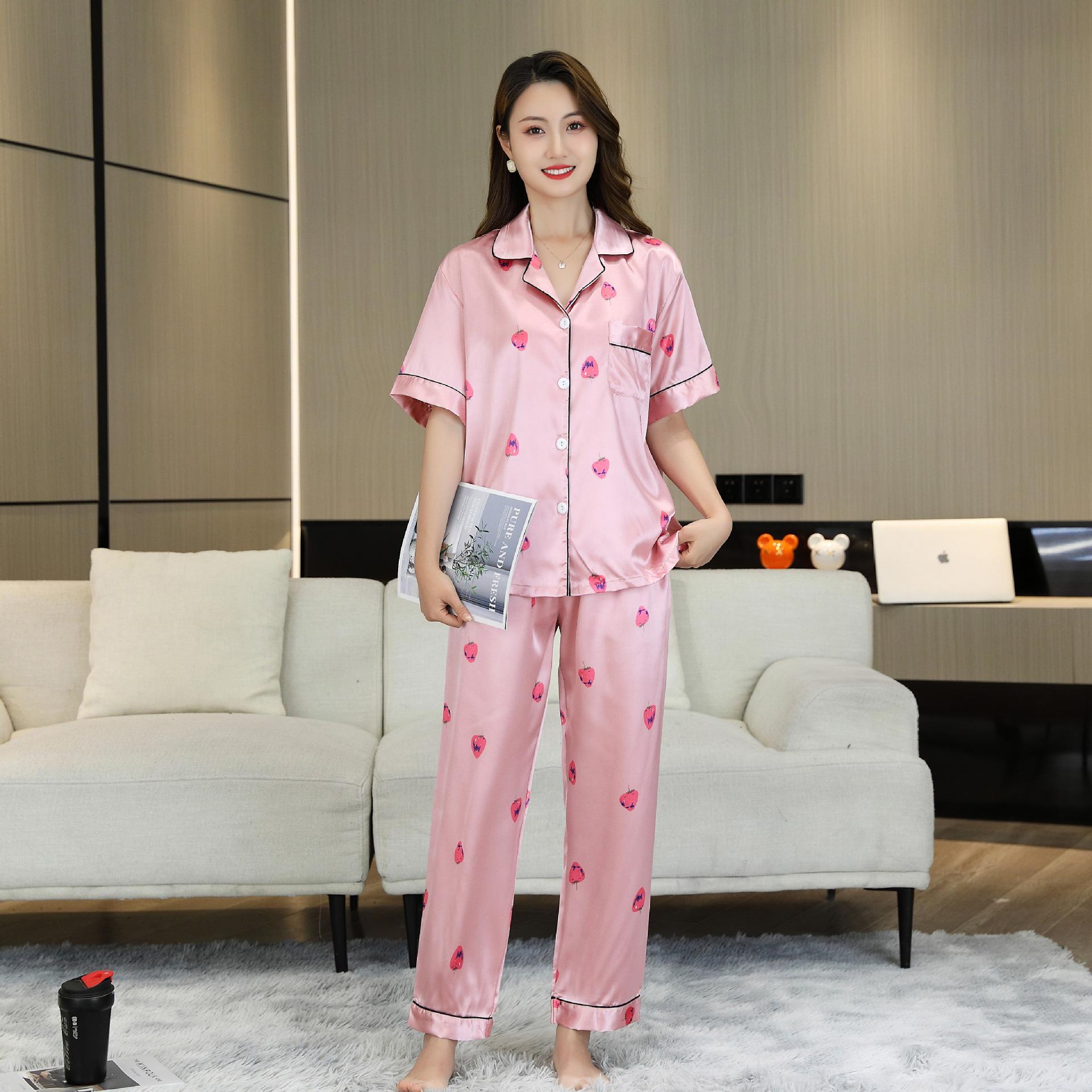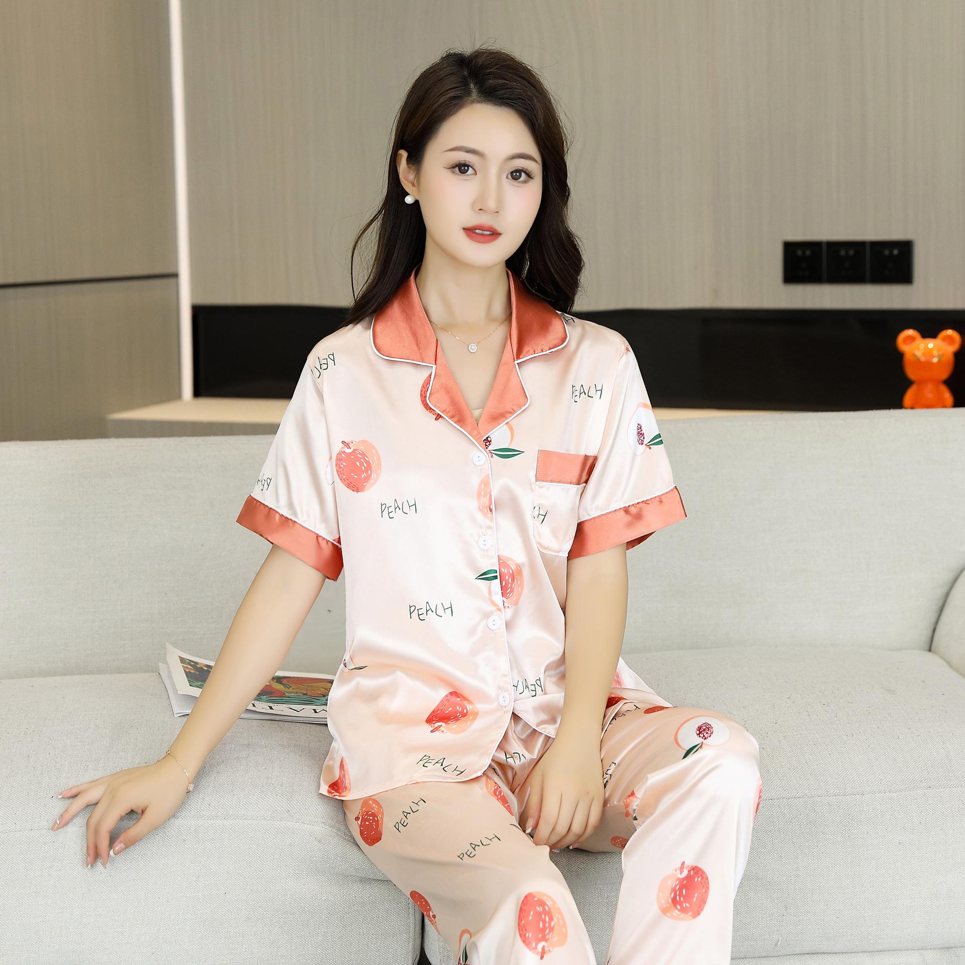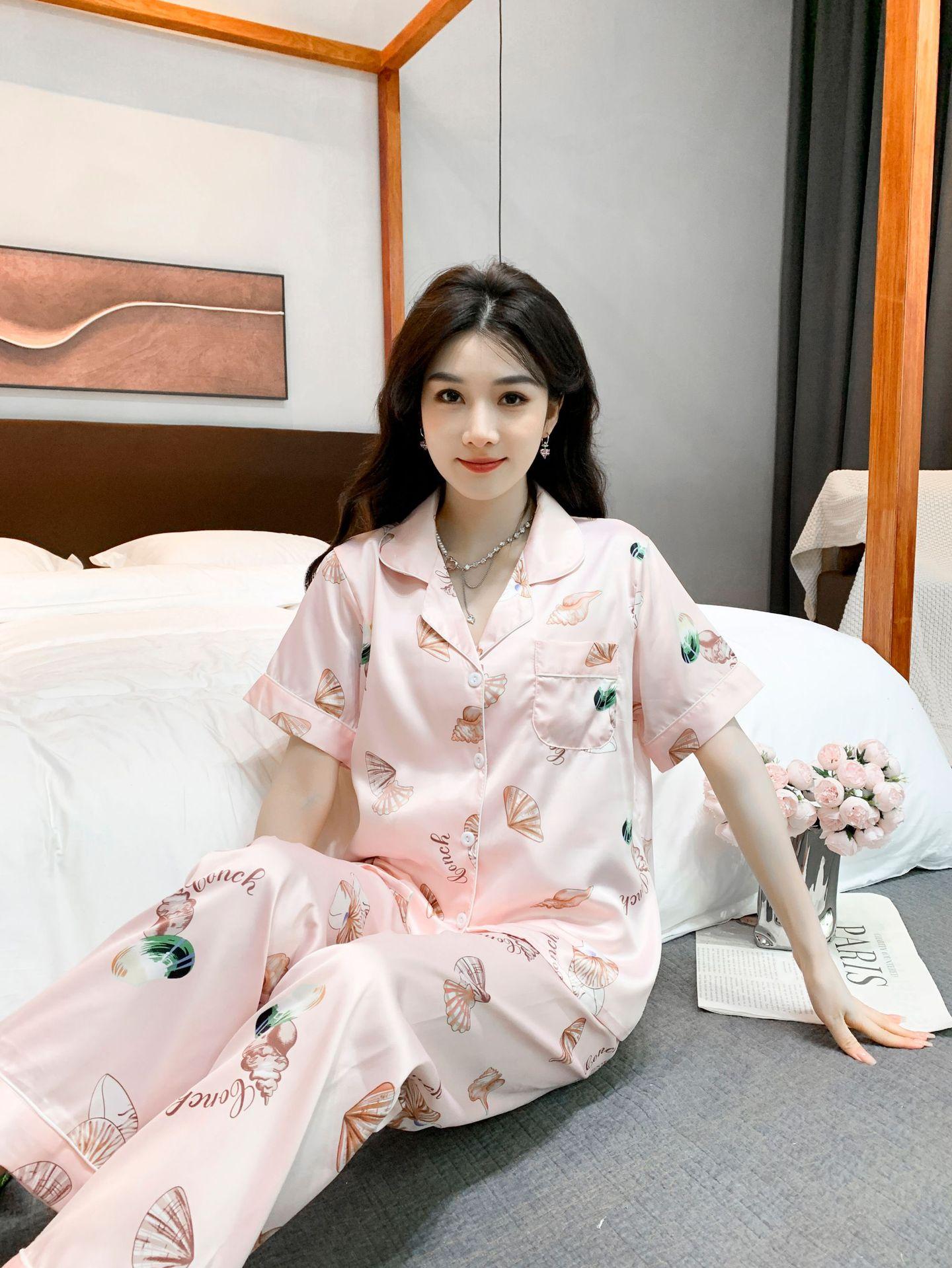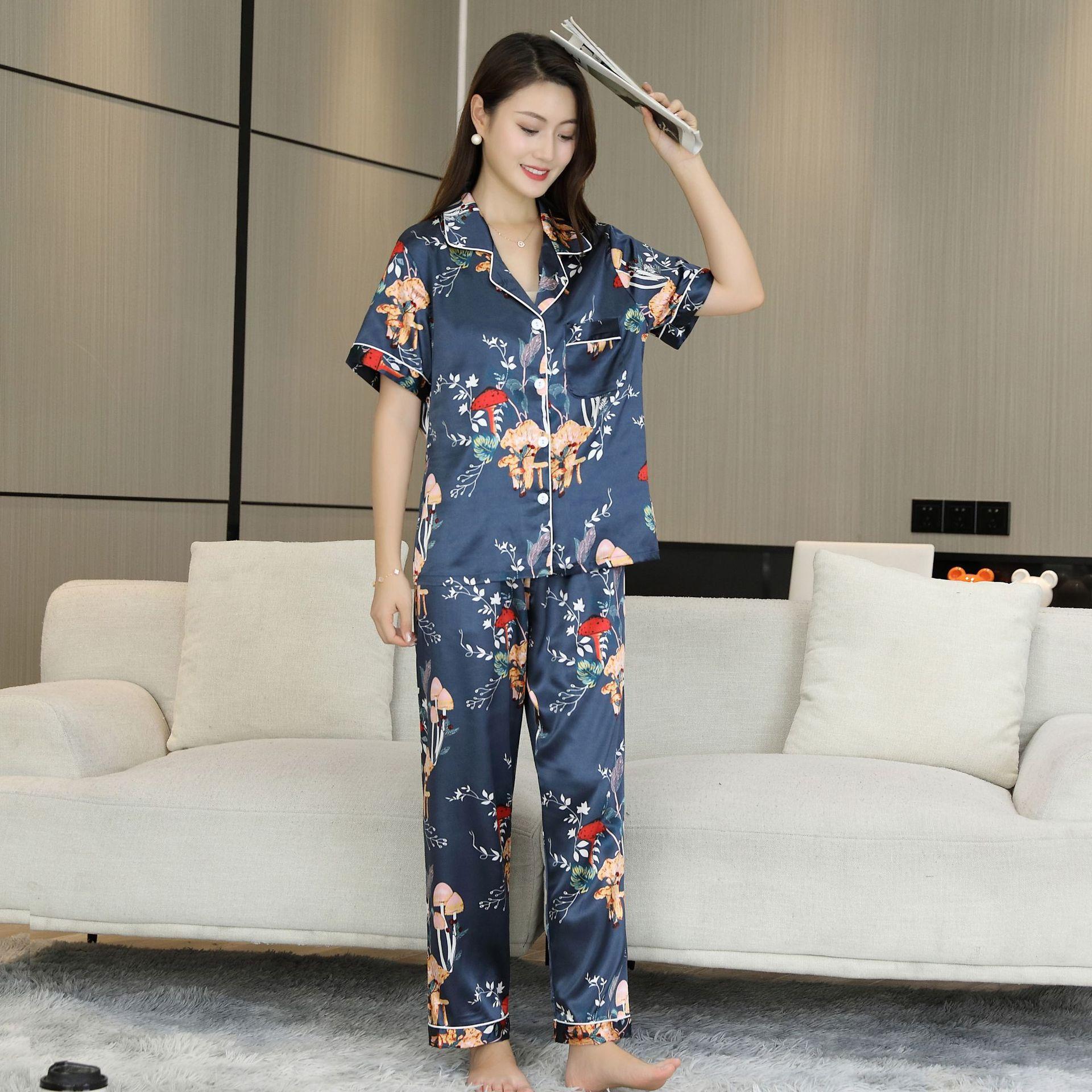 Pijama de Seda de Hielo para Mujer Verano Ropa para el Hogar de Alta Gama Lujo Ligero Manga Corta Pantalón Conjunto de Dos Piezas Pijama de Seda Imitación Estilo Delgado Se Puede Usar Afuera
