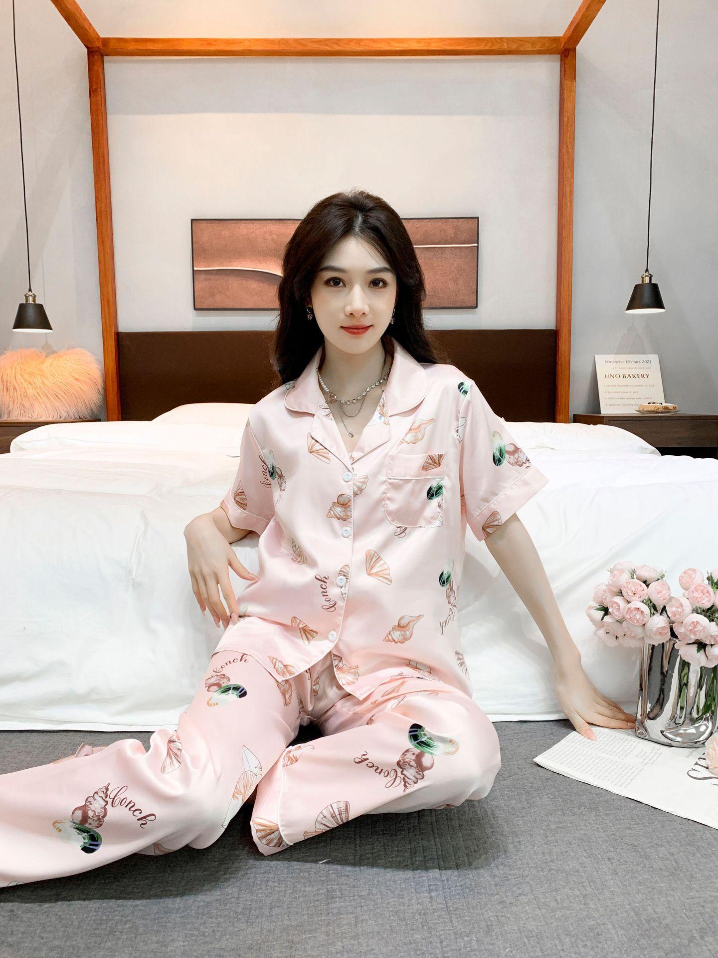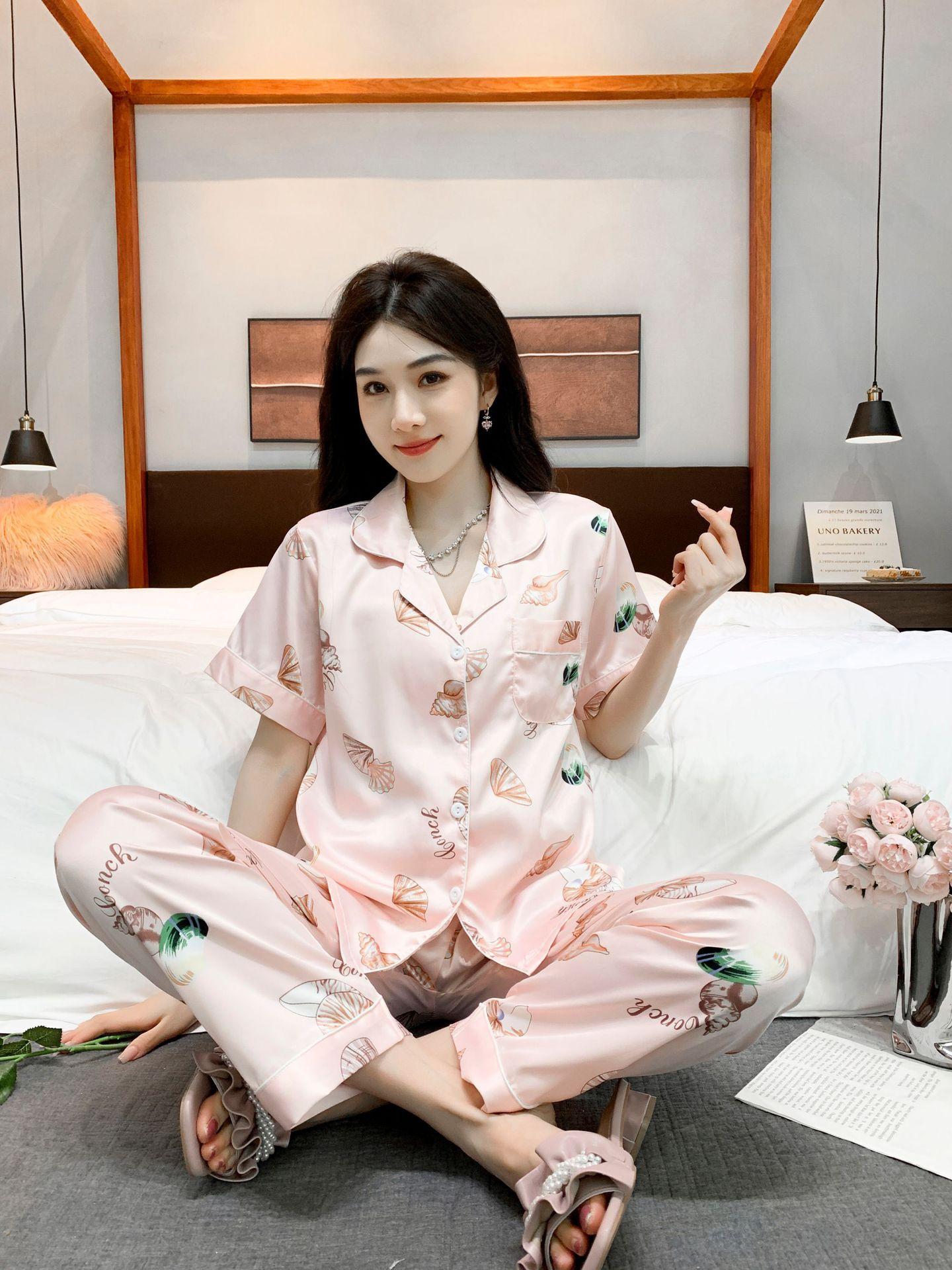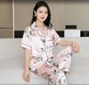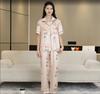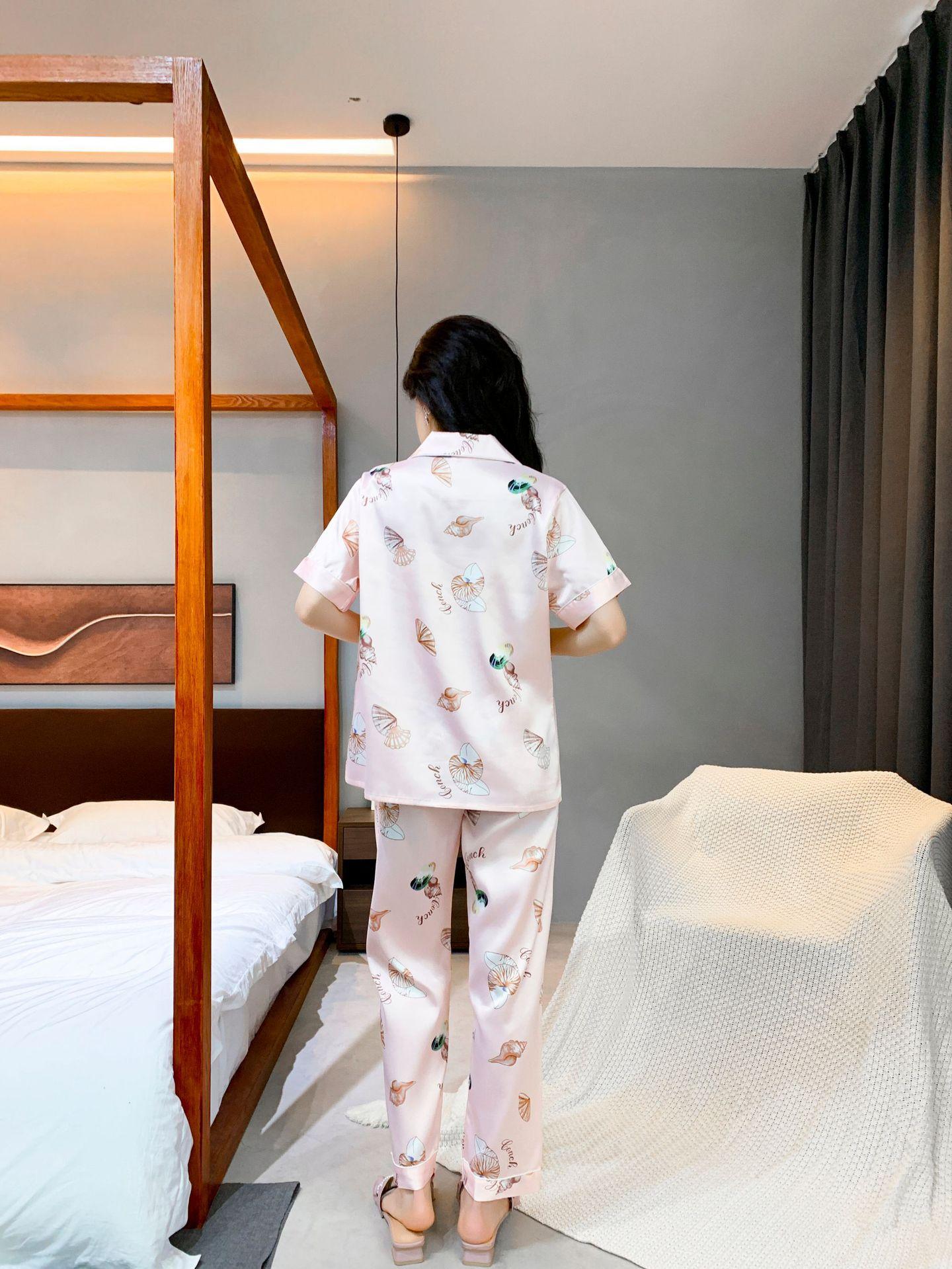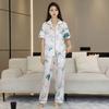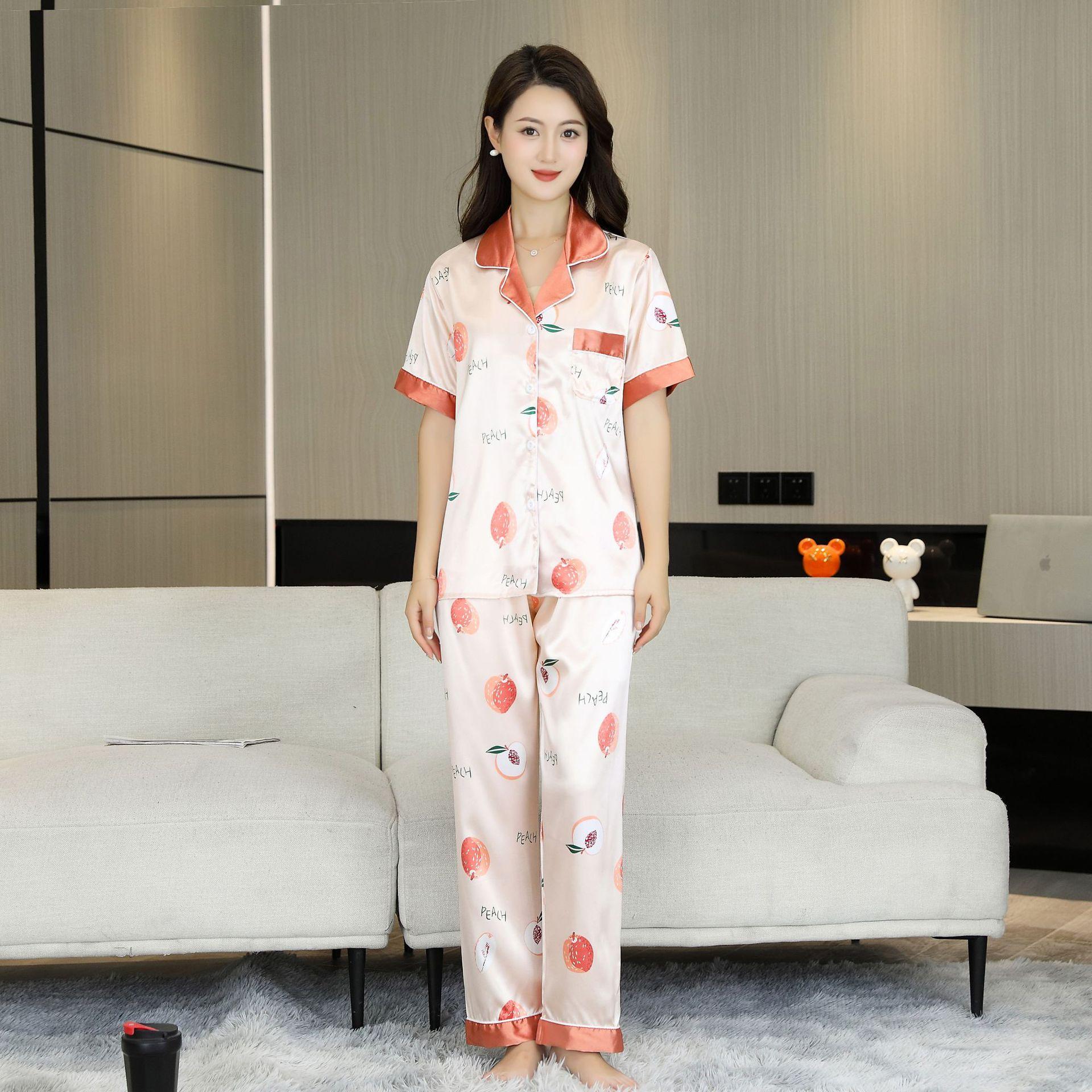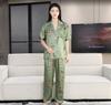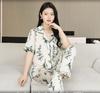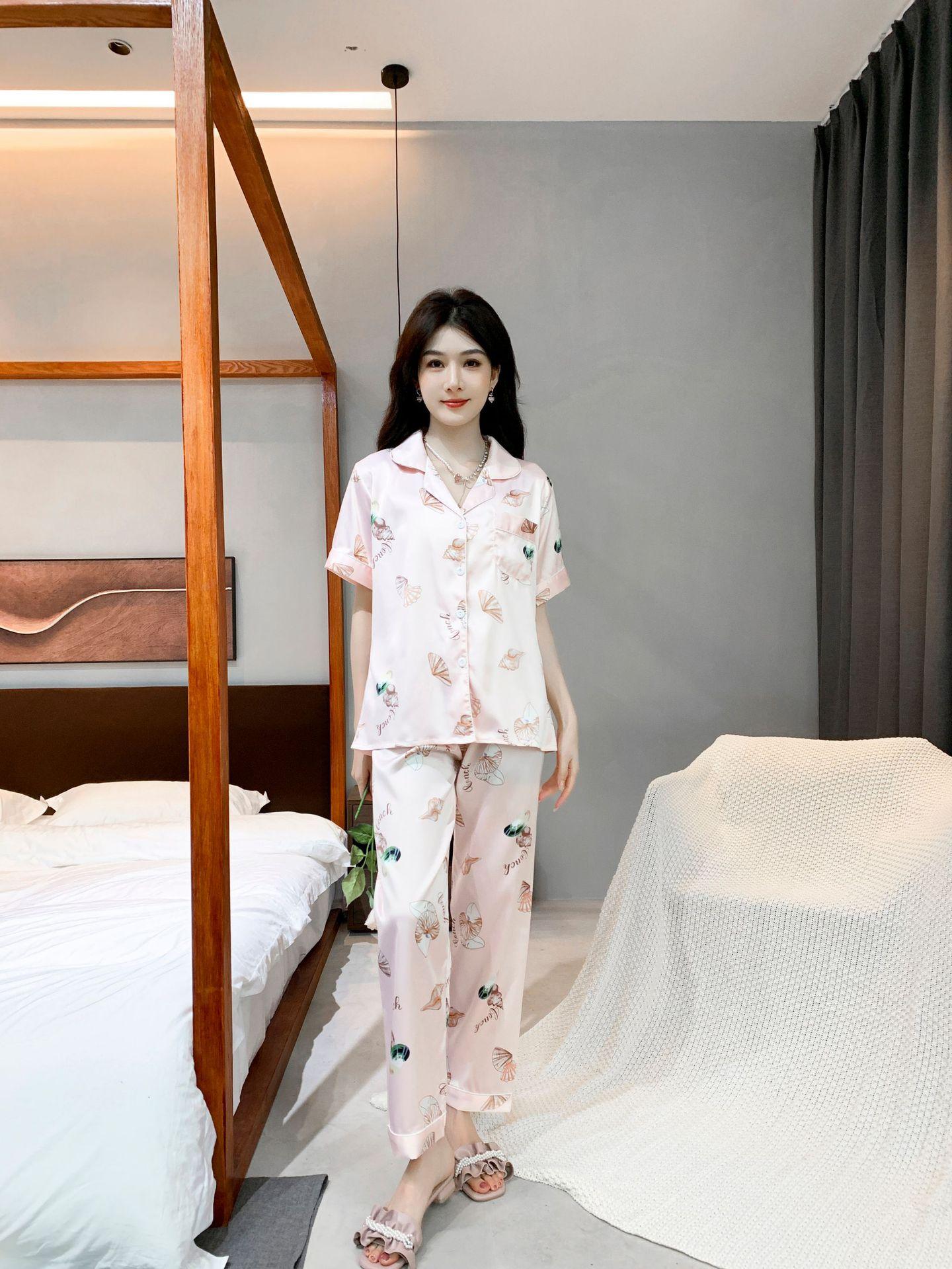 Pijama de Seda de Hielo para Mujer Verano Ropa para el Hogar de Alta Gama Lujo Ligero Manga Corta Pantalón Conjunto de Dos Piezas Pijama de Seda Imitación Estilo Delgado Se Puede Usar Afuera