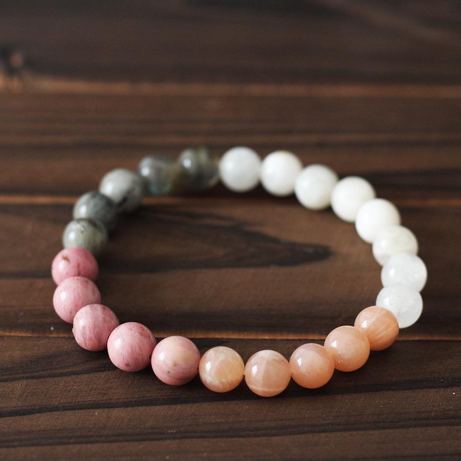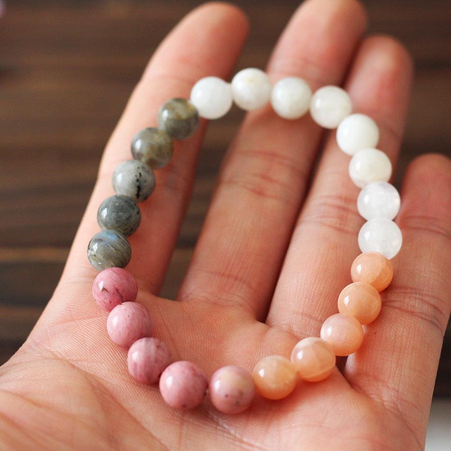 Pulsera de Cristal Natural Cristal Blanco Piedra de Luz de Luna Piedra Rosa Piedra Sol Pulsera Pulsera Artesanías de Cristal Transfronterizas para Mujer