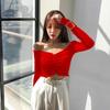 Clavícula Descubierta Sexy Cuello Hombro Top Corto para Mujer Niñas Hot Estilo Hong Kong Ajustada Ombligo Camiseta Base