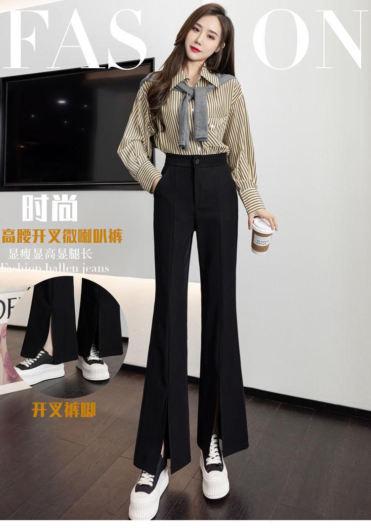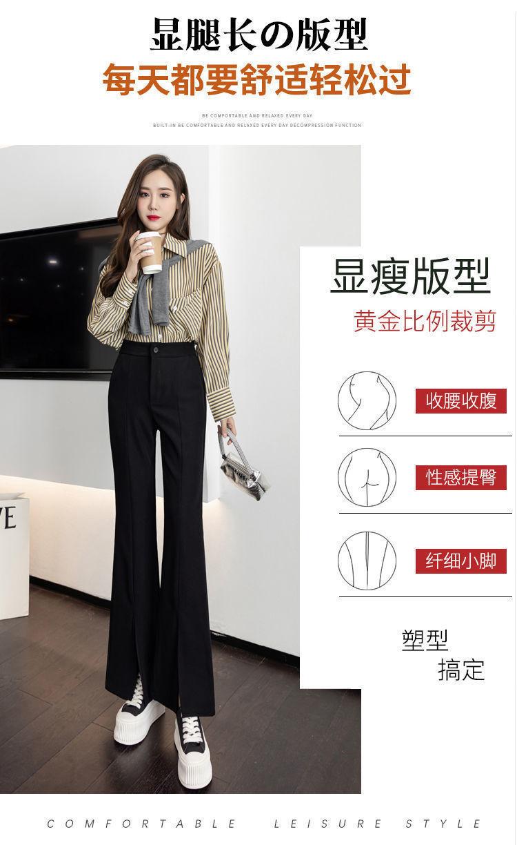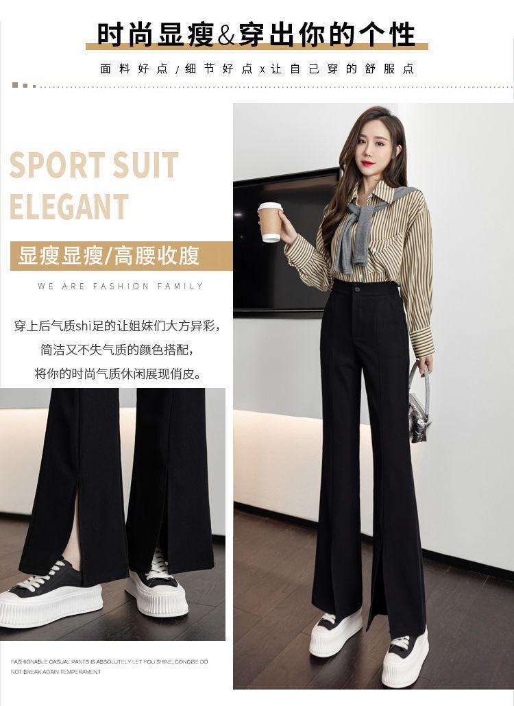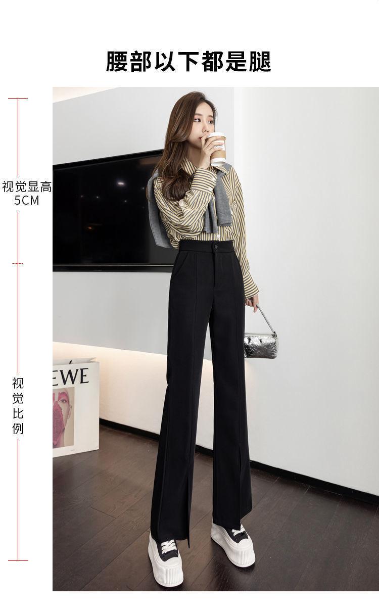 Pantalones casuales para mujer, pantalones de traje de cintura alta, rectos, sueltos, drapeados, versátiles, con abertura y microcampanados, novedad de 2023