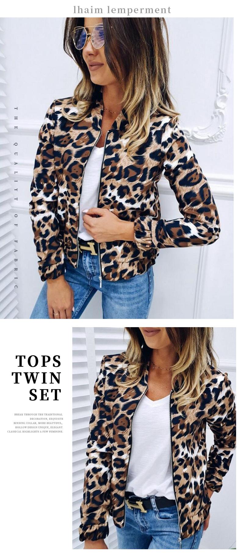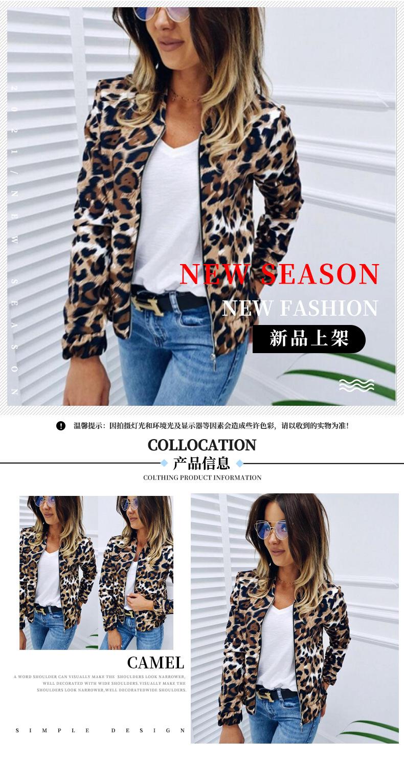 Amazon Transfronterizo 2024 Moda de Primavera y Otoño Europea y Americana para Mujer Traje Pequeño Suelto Estampado de Leopardo a la Moda Cárdigan Cuello Mao Chaqueta con Cremallera