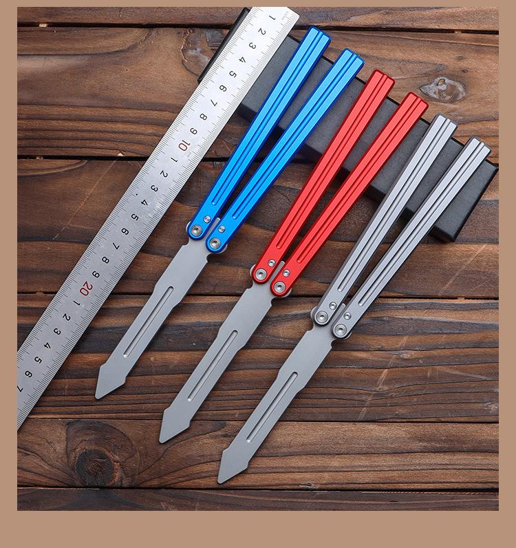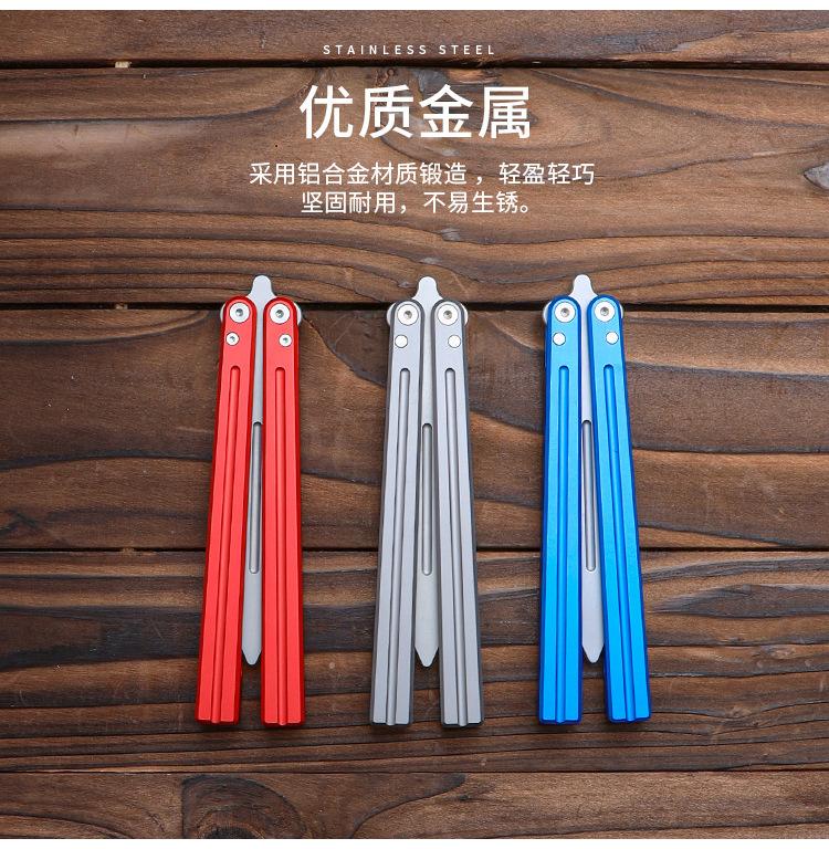 Cuchillo mariposa de hoja no abierta, cuchillo plegable portátil, herramienta de práctica para principiantes al aire libre, cuchillo de juego, cuchillo oscilante con mango de aluminio, disponible al por mayor