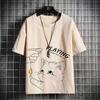 Camiseta de manga corta de algodón grueso para hombre, novedad de verano de 2025, camiseta informal estampada, top holgado de moda.