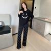 Pijama nuevo para mujer, traje estampado de emoticonos modal, primavera y verano, pantalones finos de manga larga, ropa de abrigo holgada de talla grande