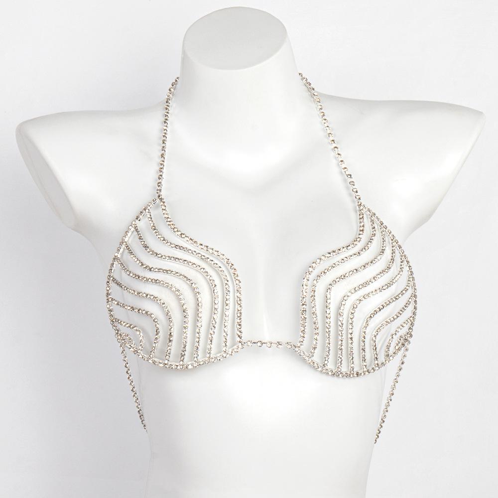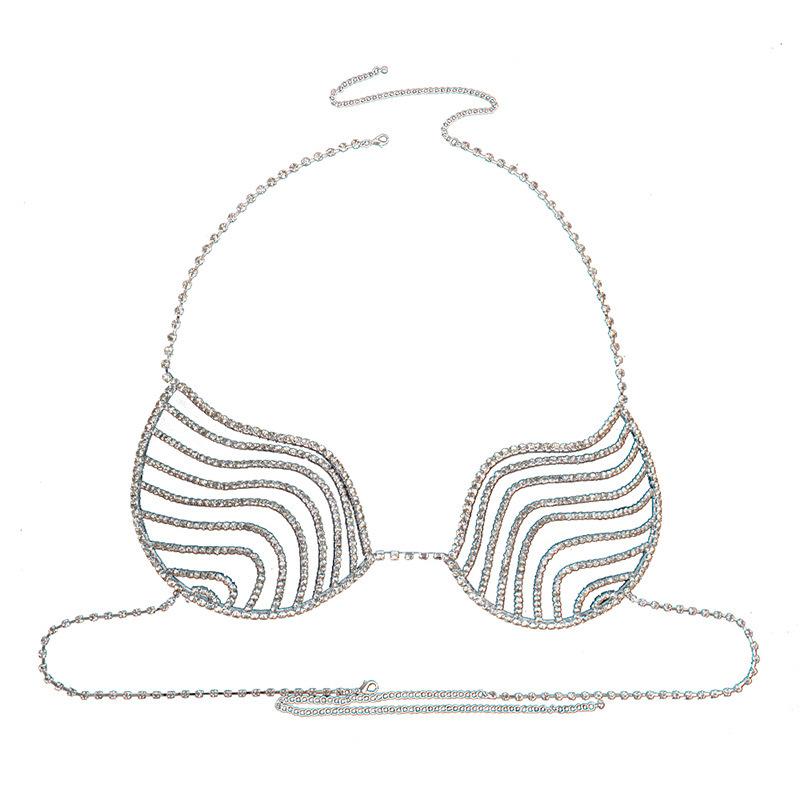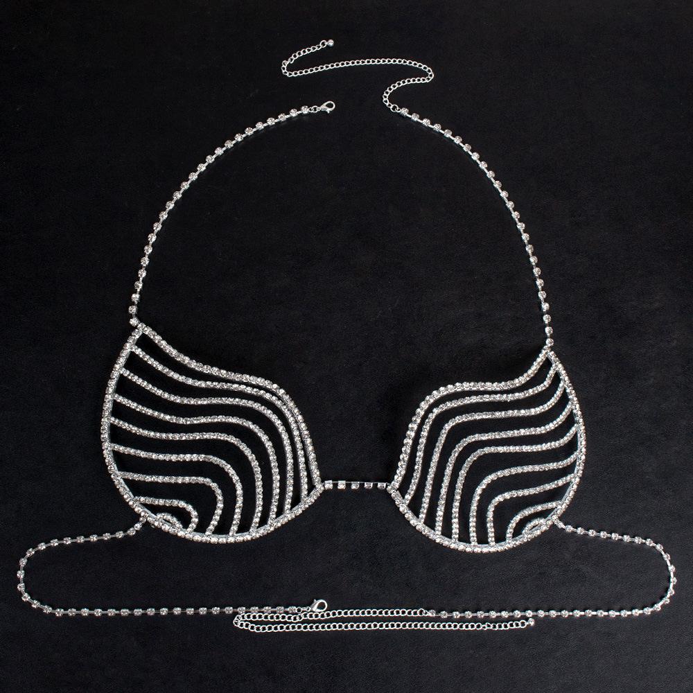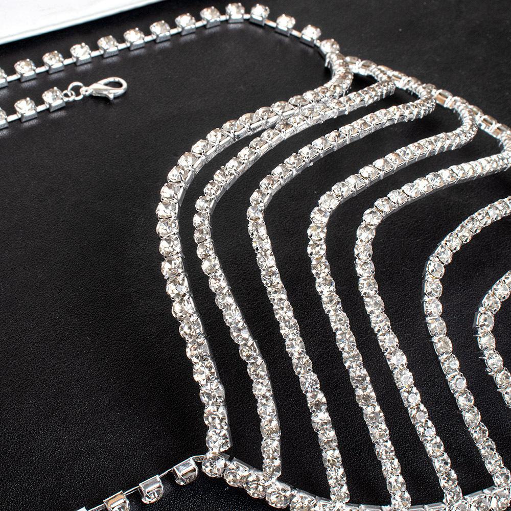 Cadena de sujetador con garra de bikini con diamantes de imitación sexy transfronterizos europeos y americanos Cadena de cuerpo geométrica hueca con incrustaciones de diamantes
