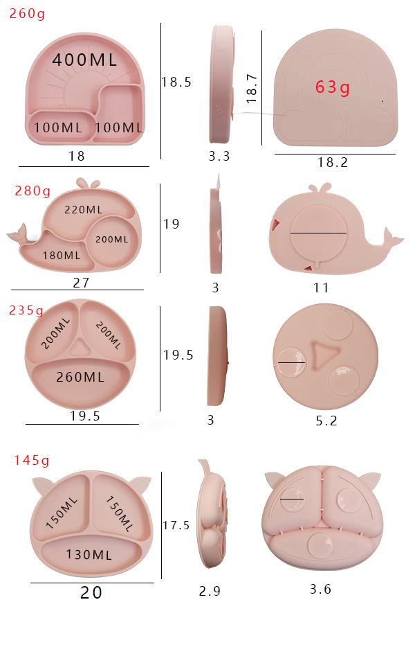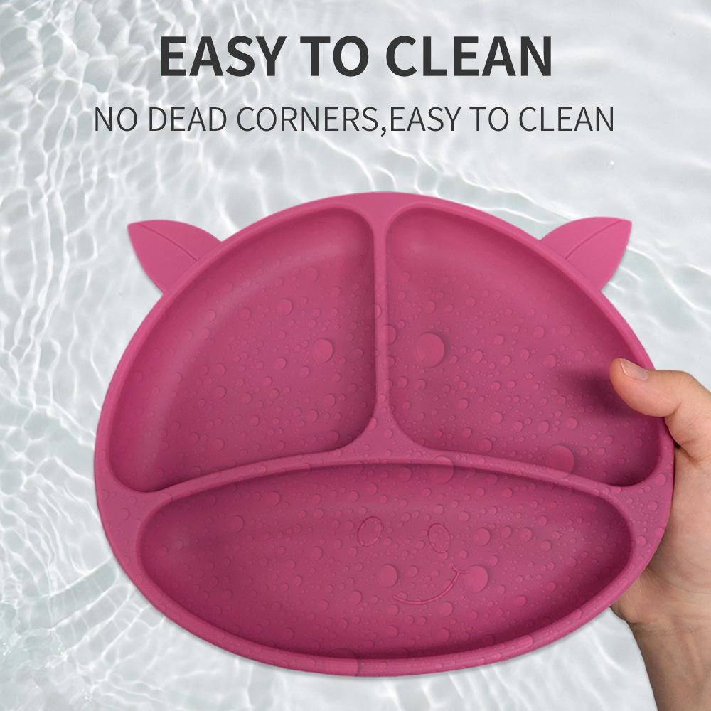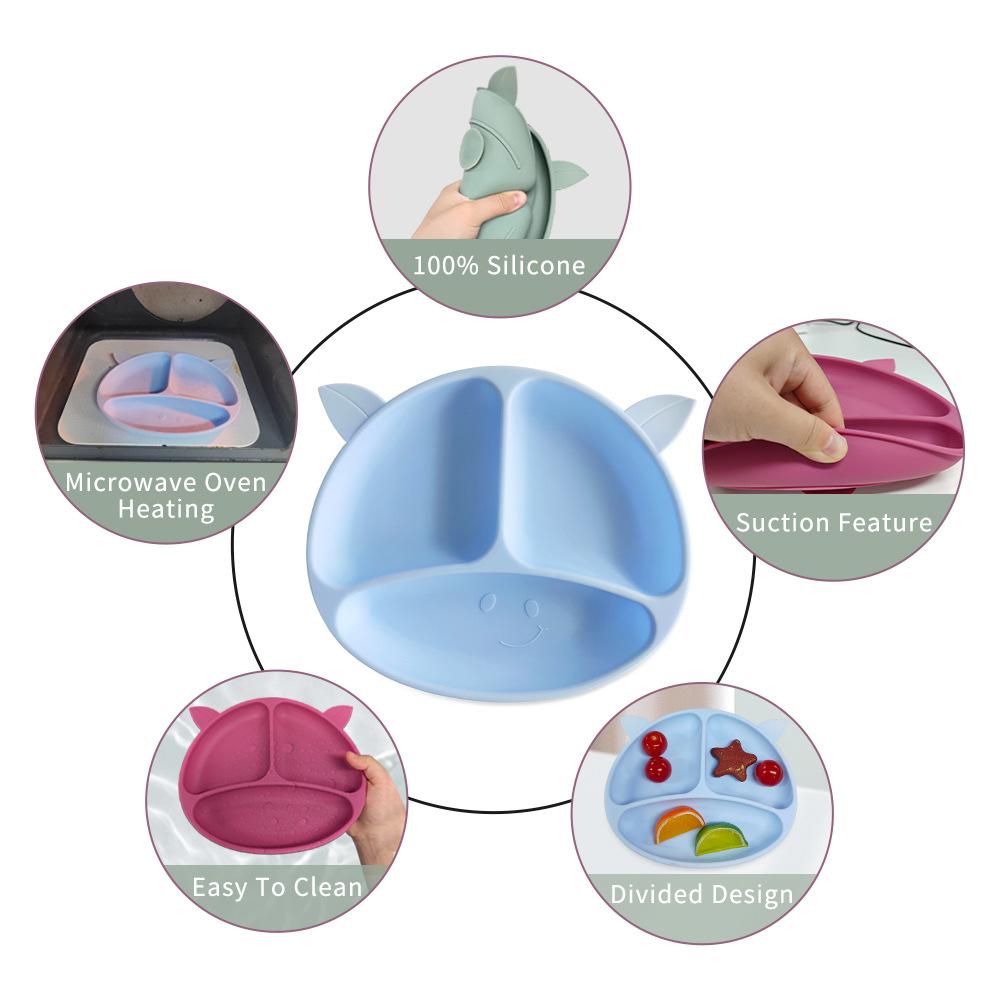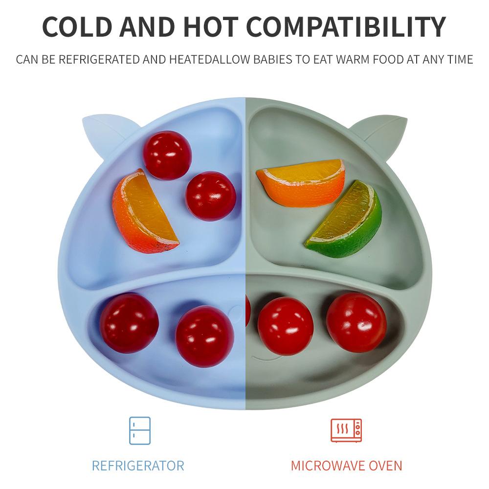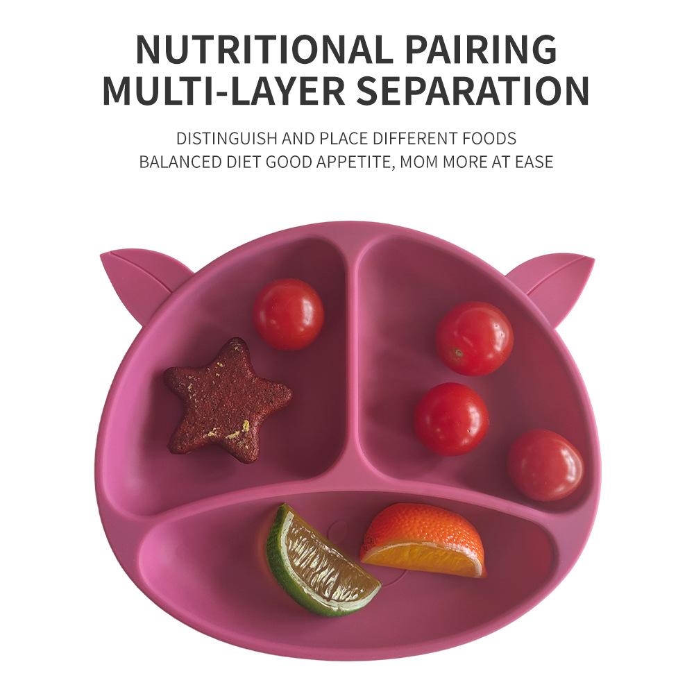 Compartimento de suplemento alimenticio para bebés transfronterizo de fábrica, plato de silicona para niños, ventosa integrada, vajilla resistente a caídas y caliente.