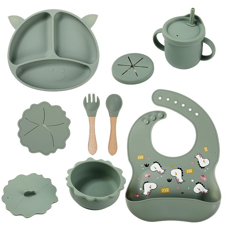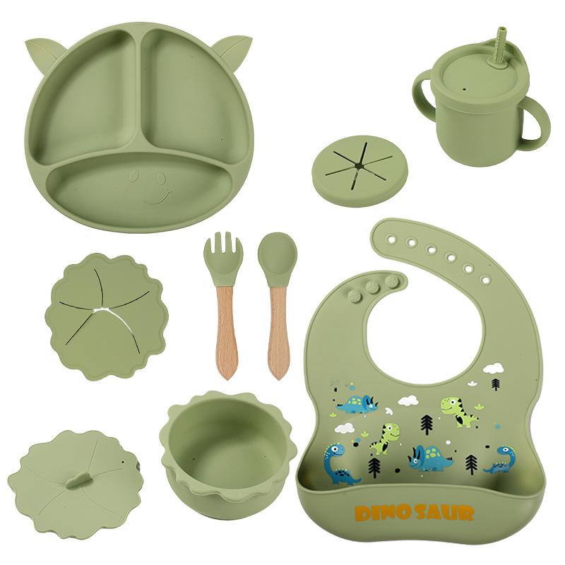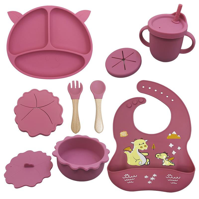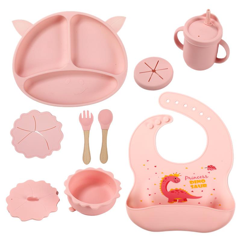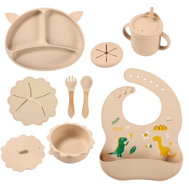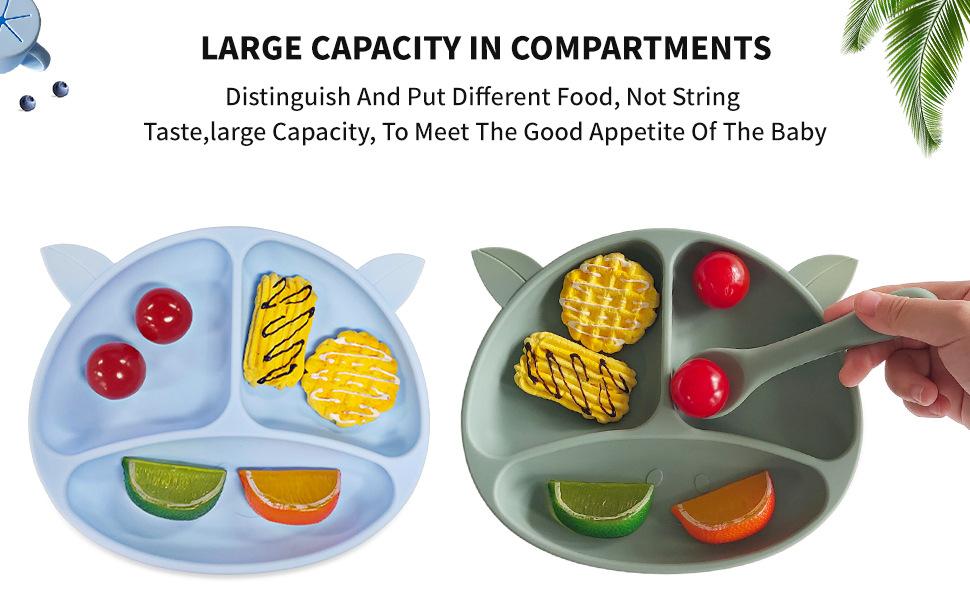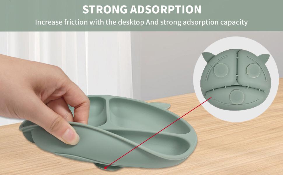 Compartimento de suplemento alimenticio para bebés transfronterizo de fábrica, plato de silicona para niños, ventosa integrada, vajilla resistente a caídas y caliente.