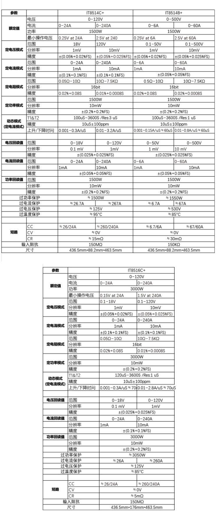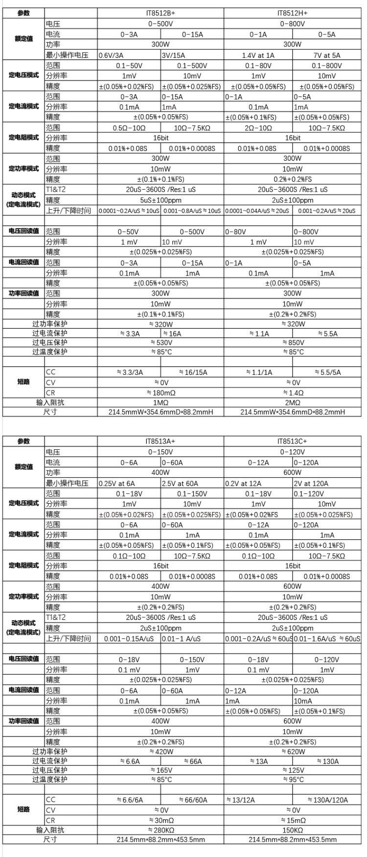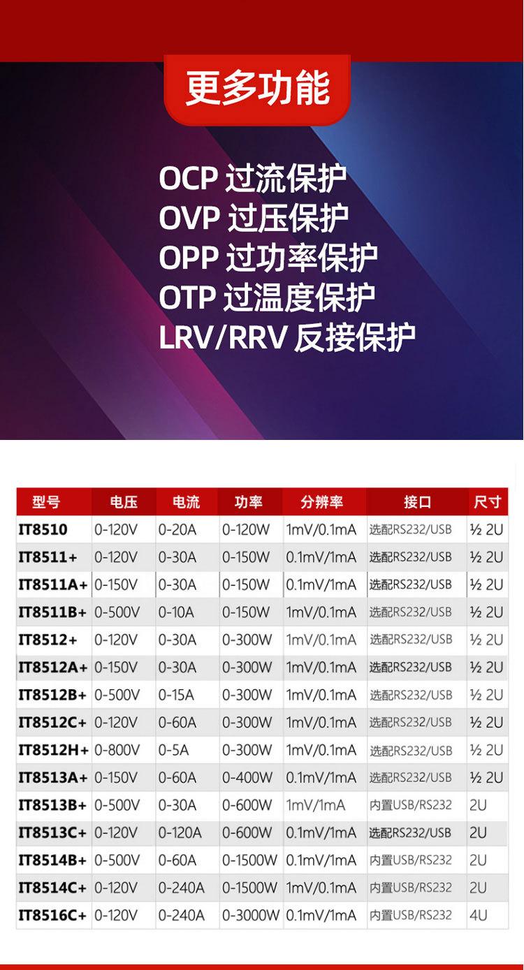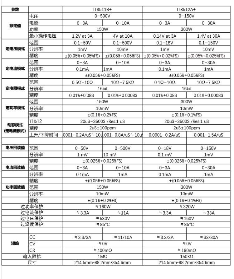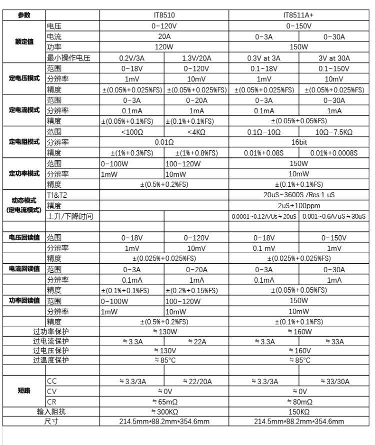 IT8510 120W/120V/20A, IT8511 +150W/120V/30A, IT8511A +150W/150V/30A, IT8511B +150W/150V/fiberglass, IT8512 +30...