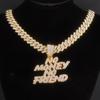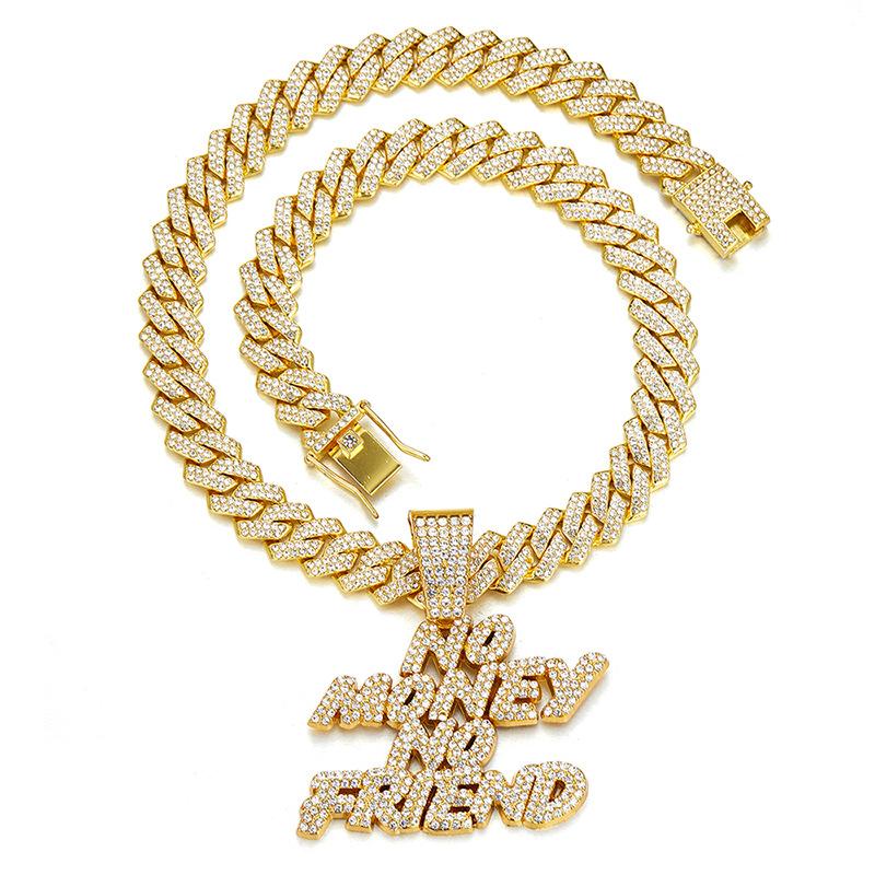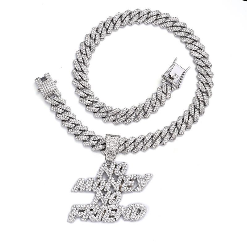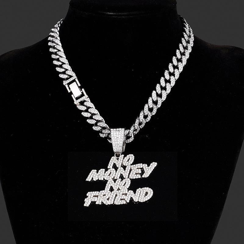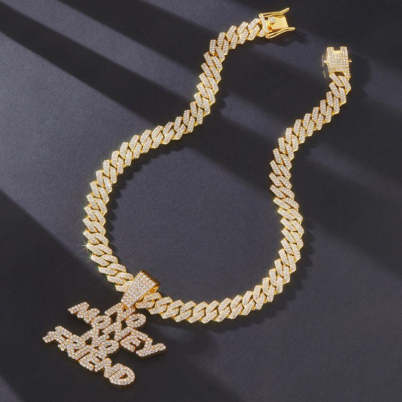 Collar hip hop con nueva letra transfronteriza, marca de moda, lujo ligero, aleación versátil, pedrería, cadena cubana, collar de cruz, exclusivo transfronterizo