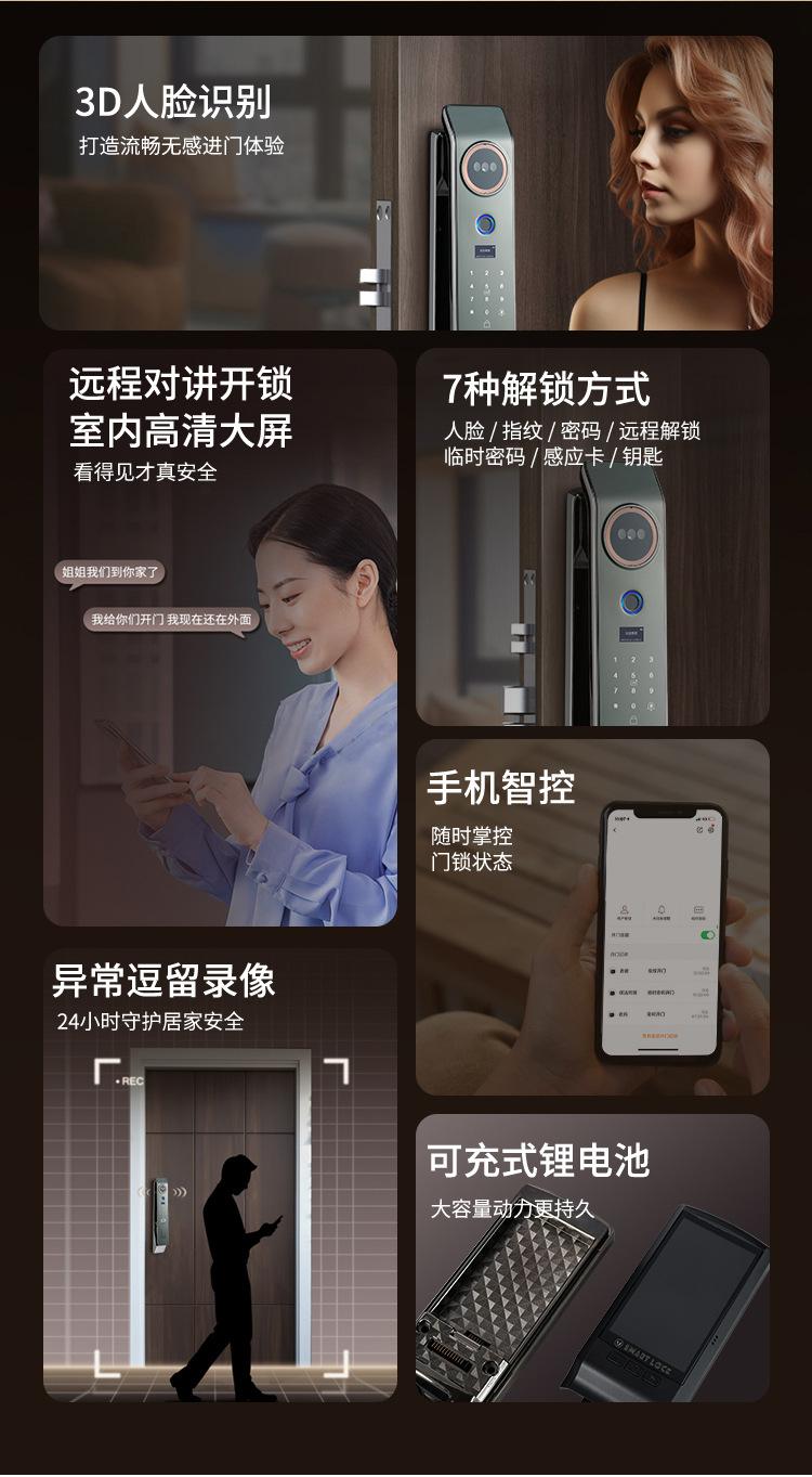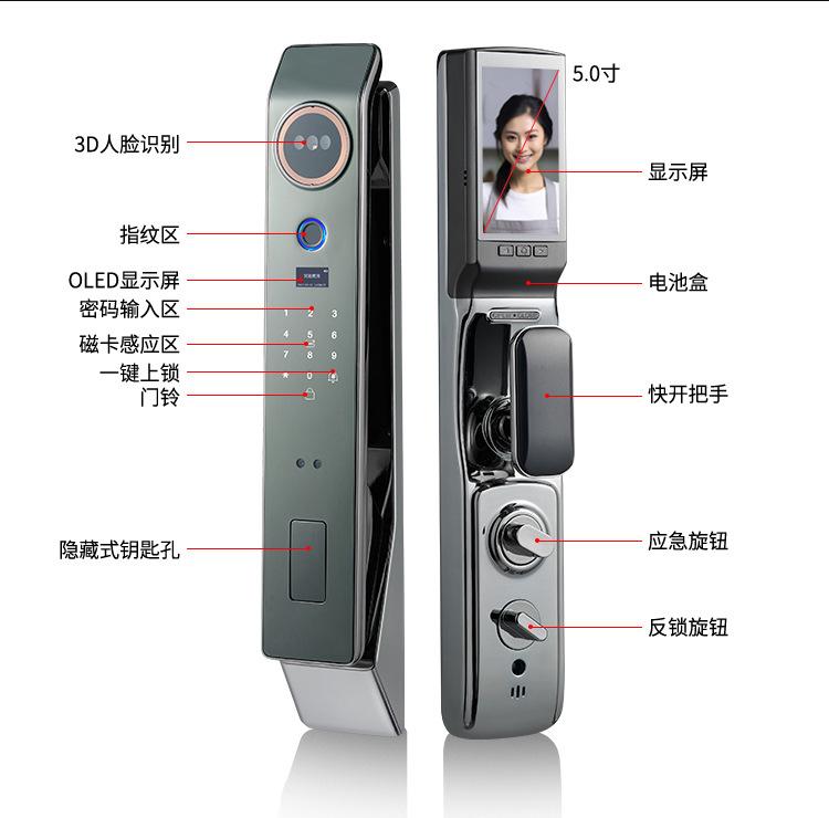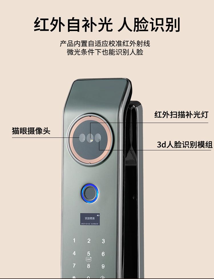 Cerradura de Puerta con Huella Digital Xi'Ao con Reconocimiento Facial, Monitoreo, Contraseña, Video Intercomunicador, Desbloqueo por Huella Digital y Monitoreo Remoto