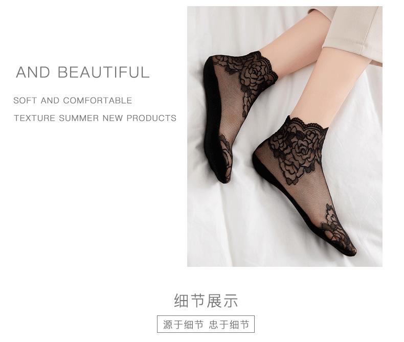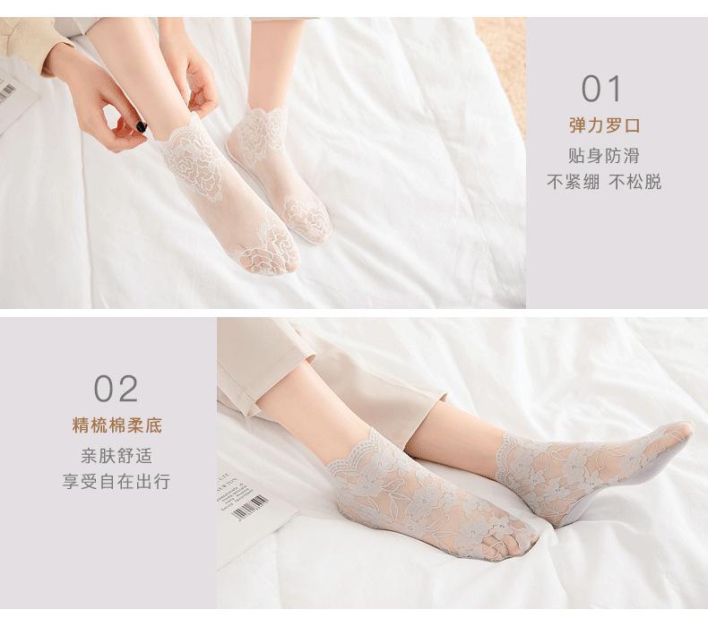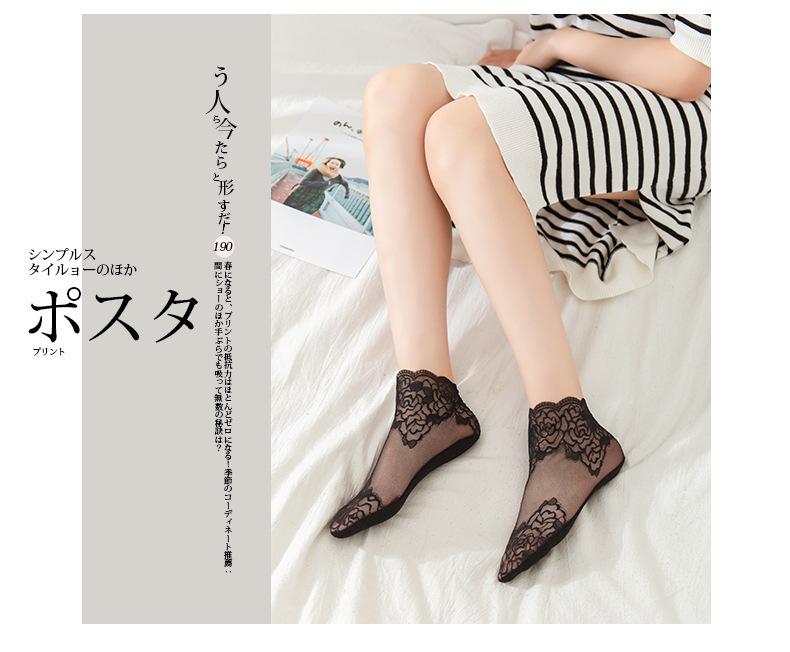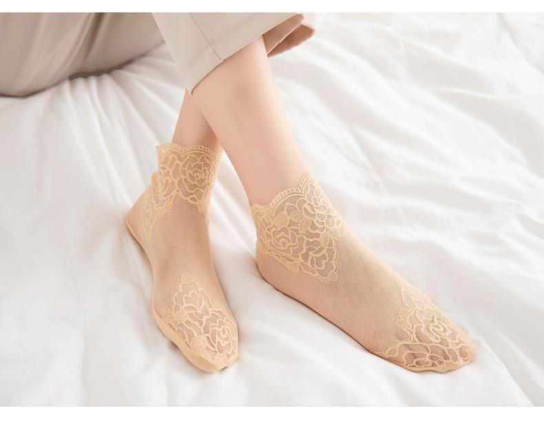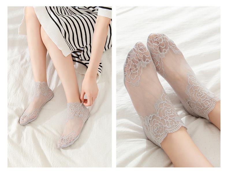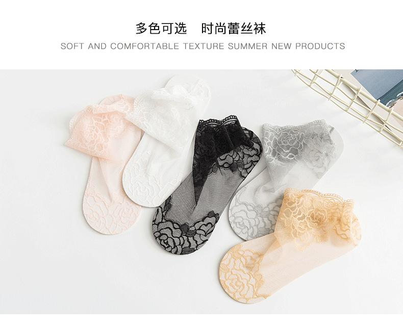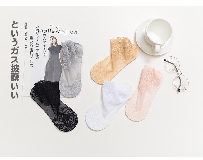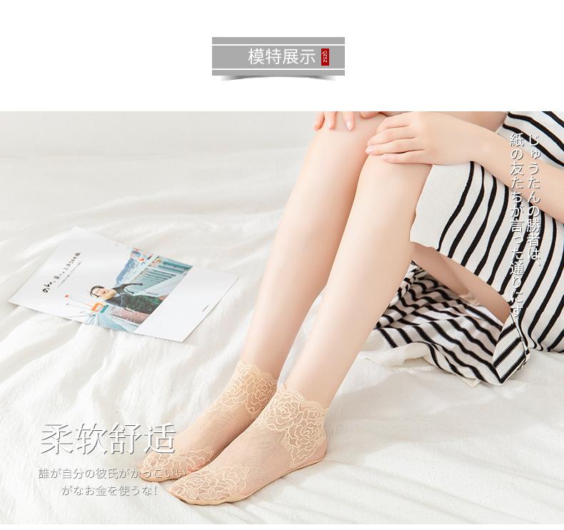 Calcetines de Encaje para Barco Tacones Altos Mujer Boca Baja Invisibles Plantillas de Verano Silicona Antideslizante Calcetines Finos Desodorantes Dulces