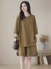 Conjunto de pantalones cortos deportivos casuales de talla grande de verano para mujer, un conjunto de traje coreano de moda de color sólido simple para mujer