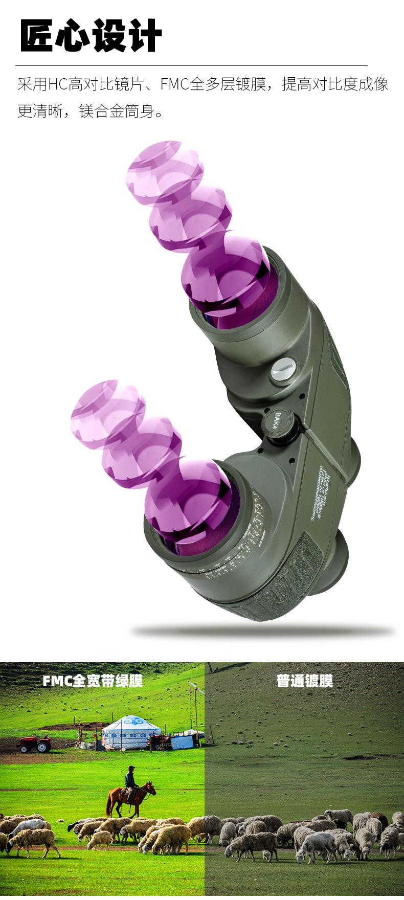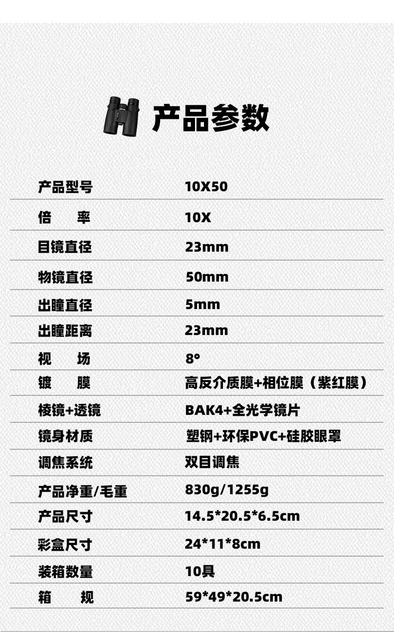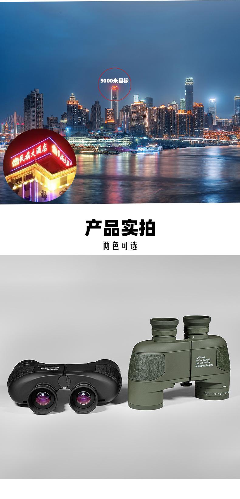 Telescopio 1050 Brújula de Navegación Medición de Coordenadas 10X Alta Definición Alta Potencia Gran Objetivo Binoculares de Visión Nocturna