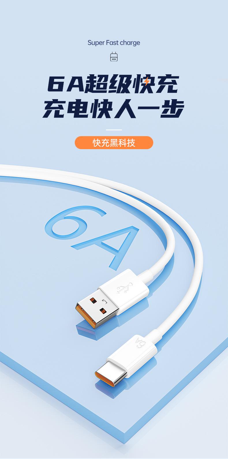Cable de datos de carga rápida 6A tipo C para teléfono móvil Huawei Glory Android.
