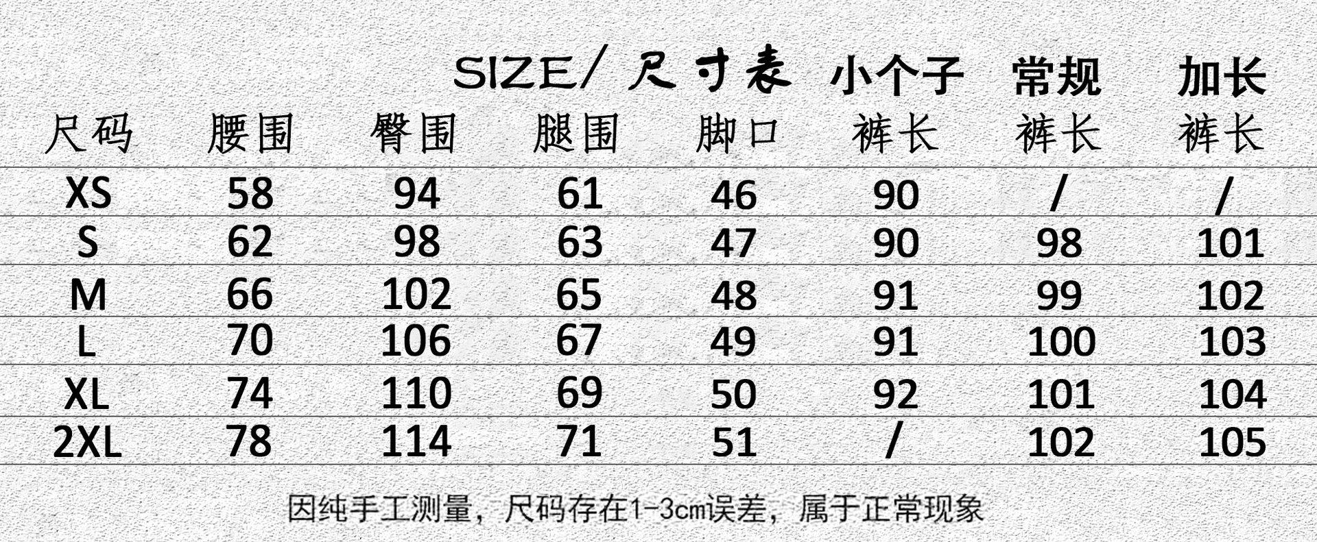 XS, S, M, L, XL, 2XL