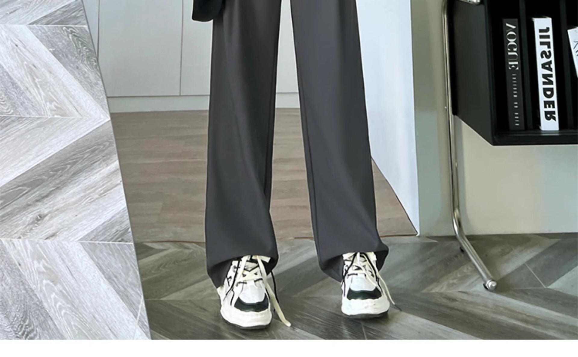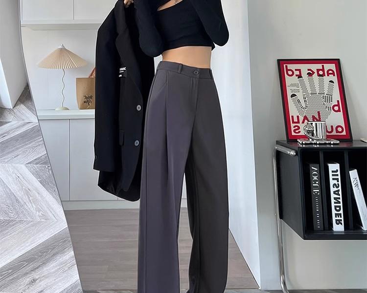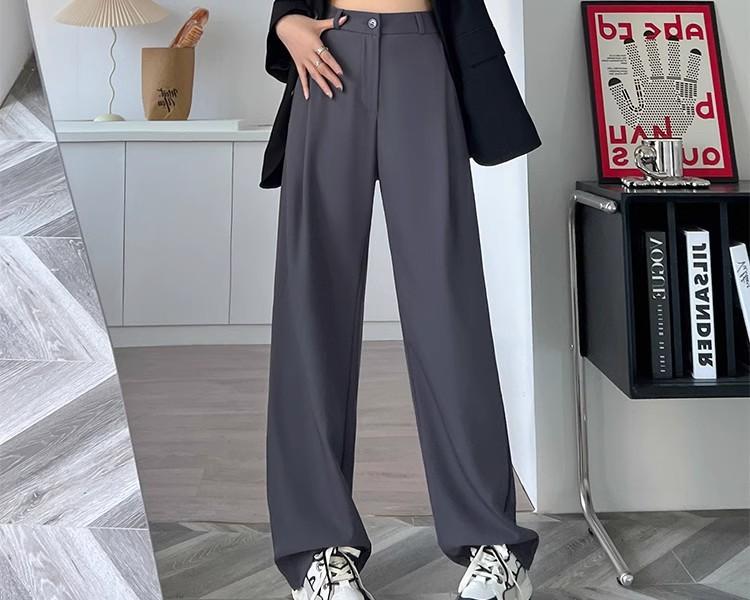 Pantalones grises para mujer, de primavera y verano, de cintura alta, holgados, adelgazantes, informales, de longitud estrecha, de tubo recto y pierna ancha.