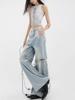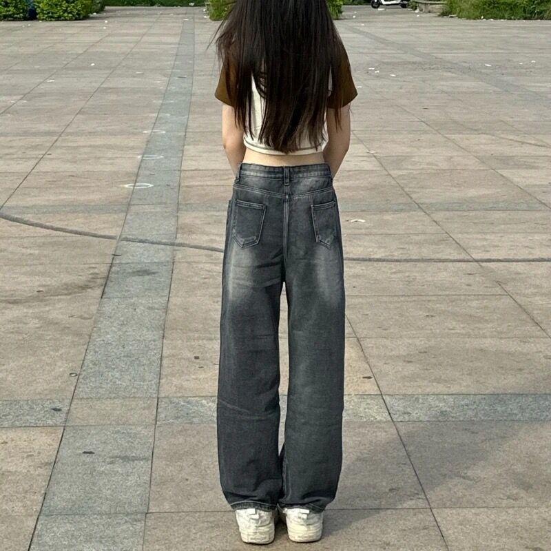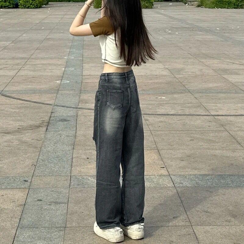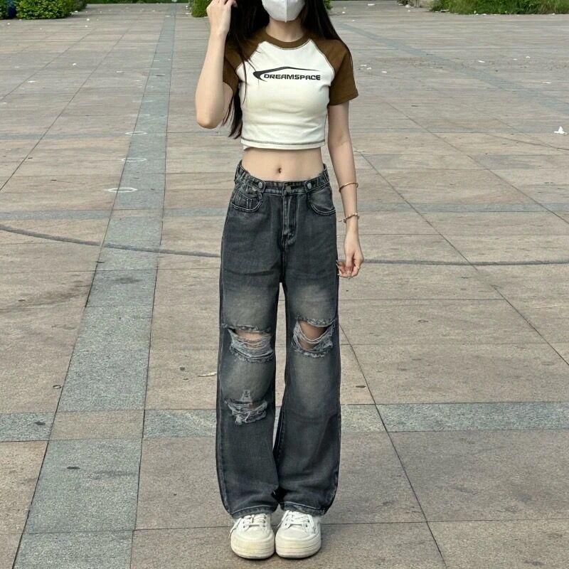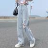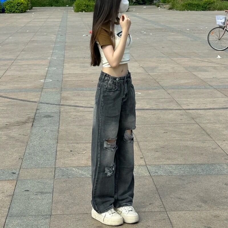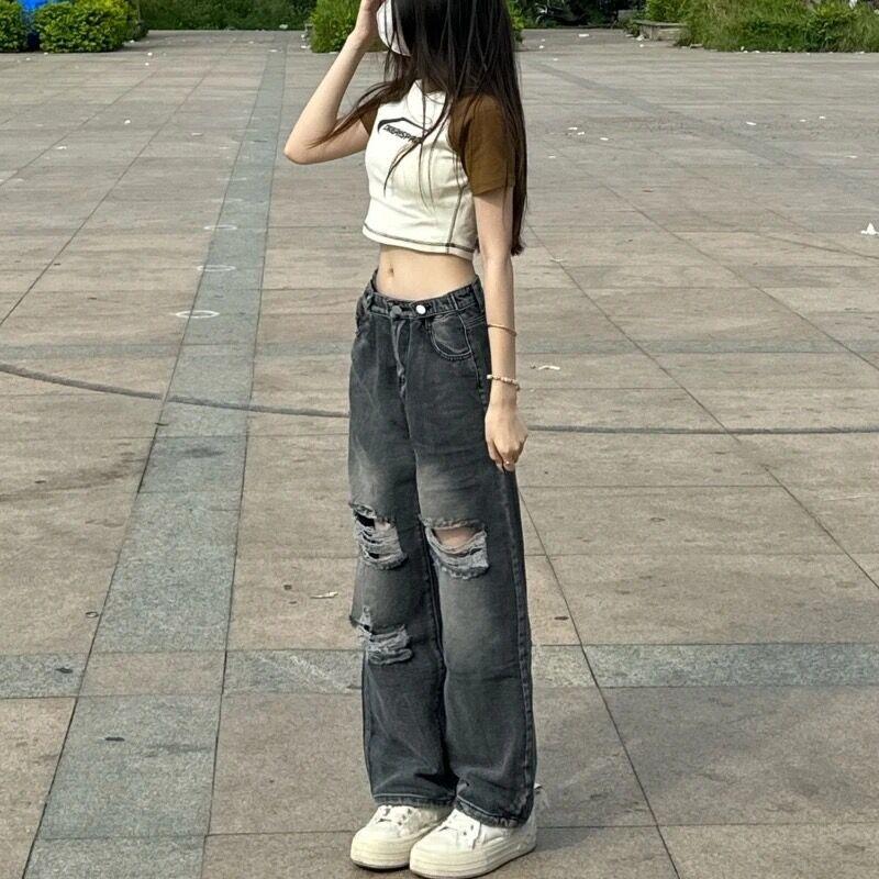 Pantalones vaqueros rotos de verano para mujer, nuevos pantalones de cintura alta con pierna ancha y diseño recto holgado, pantalones largos de moda