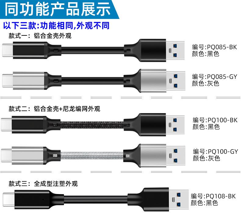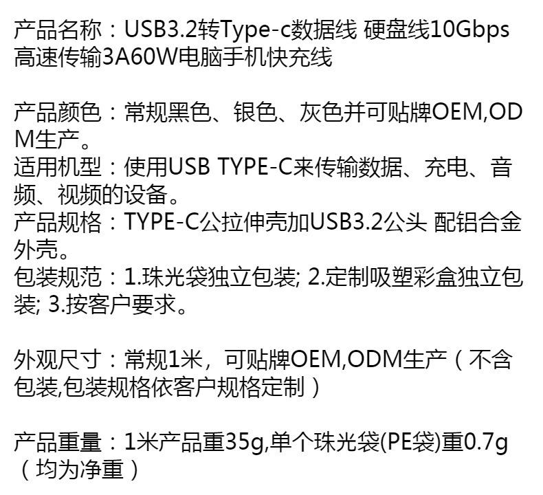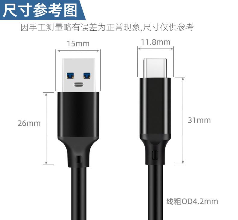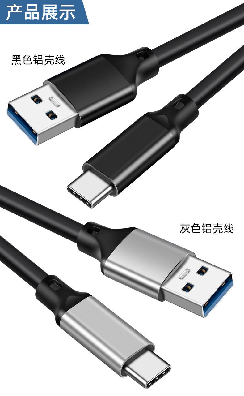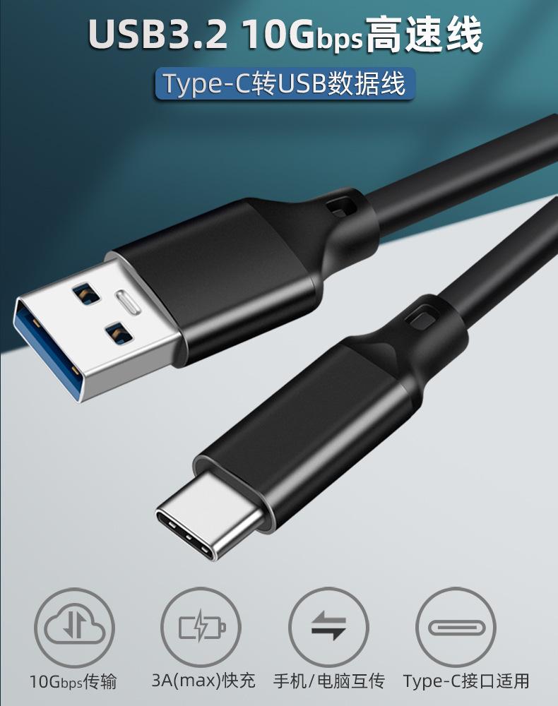 Cable de datos tipo C USB 3.2 a cable de carga tipo C, transmisión de 10 Gbps, disco duro para coche, carga rápida de 60 W y 3 A.
