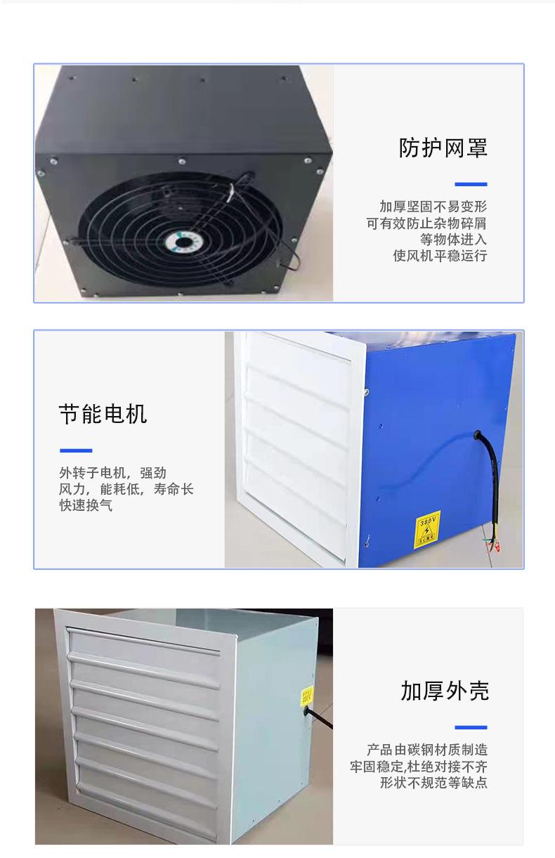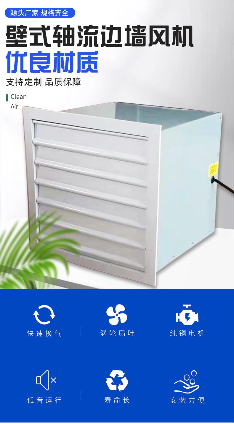 Ventilador de Extracción de Humo al por Mayor Bajo Ruido Montado en Pared Flujo Axial Pared Lateral Fibra de Vidrio Cuadrado Ventilación Presión Media