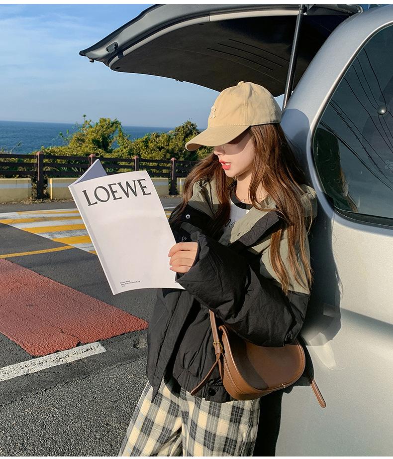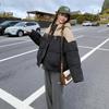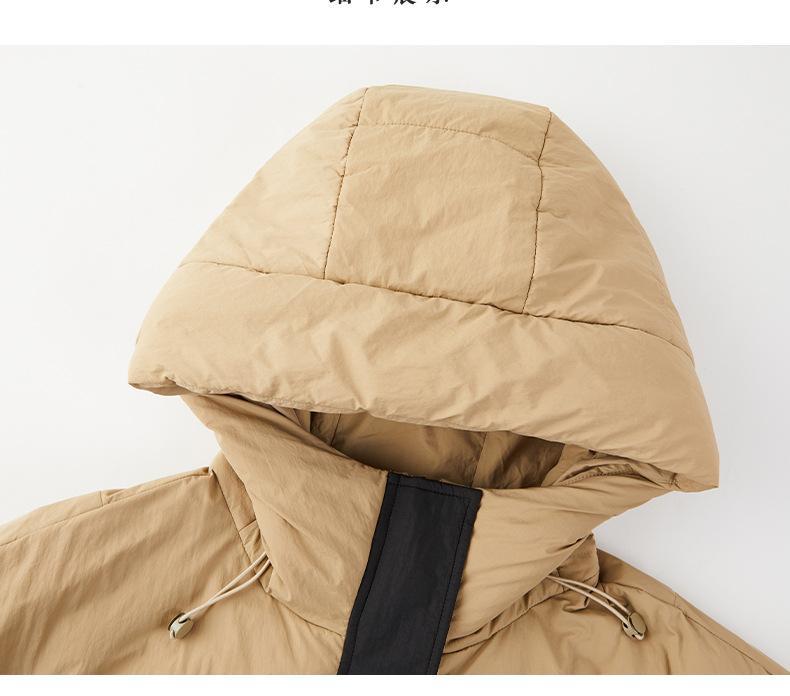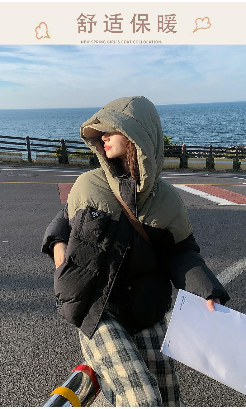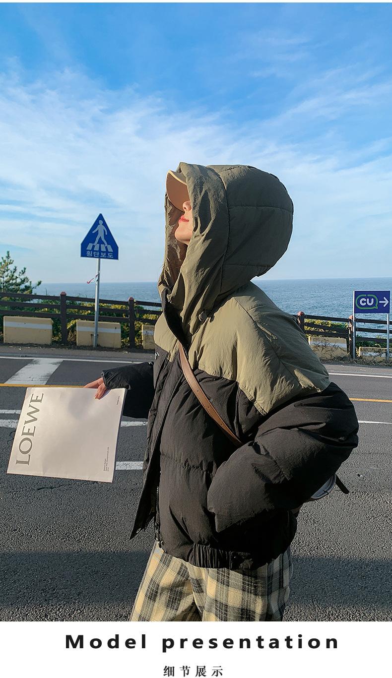 Abrigo Corto de Algodón para Mujer para Personas Pequeñas 2024 Nuevo Color Contrastante Talla Grande Invierno Abrigo de Algodón con Capucha Abrigo Holgado