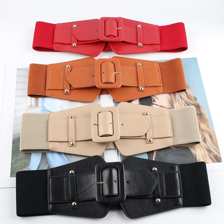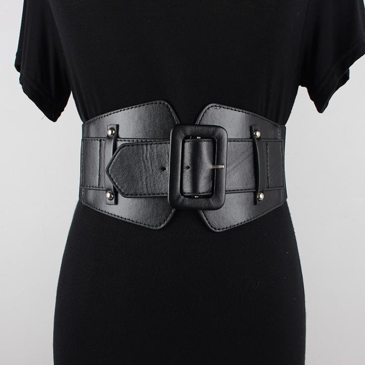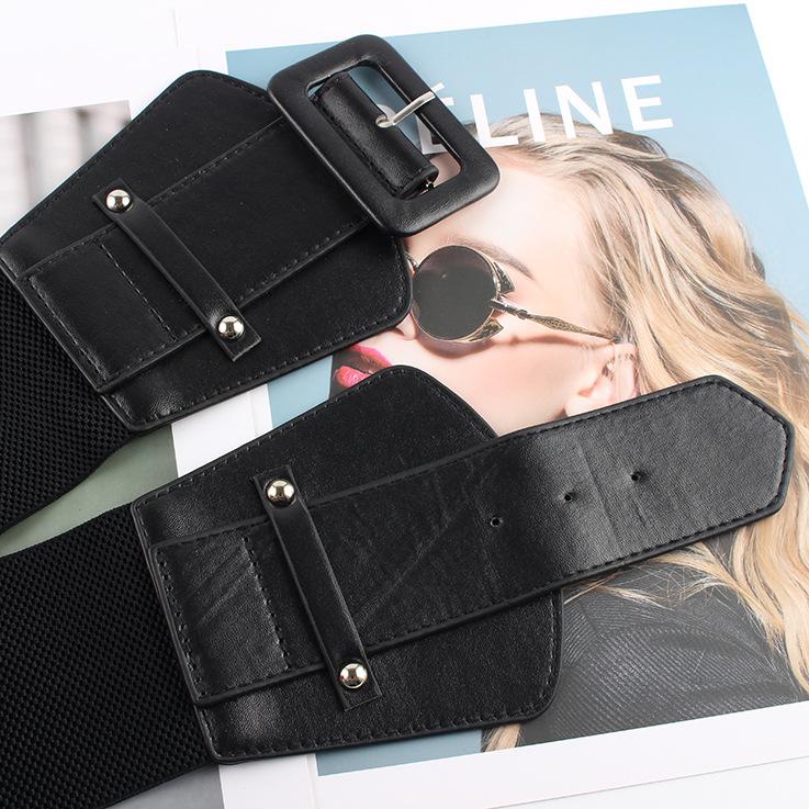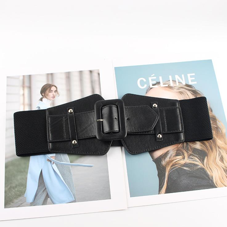 Cinturón elástico negro ancho con sello para mujer, moda retro 2023, nuevo, decorativo, para traje o vestido.