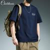 Camiseta de manga corta de algodón puro de verano para hombre, holgada, con cuello redondo y estampado, estilo moderno