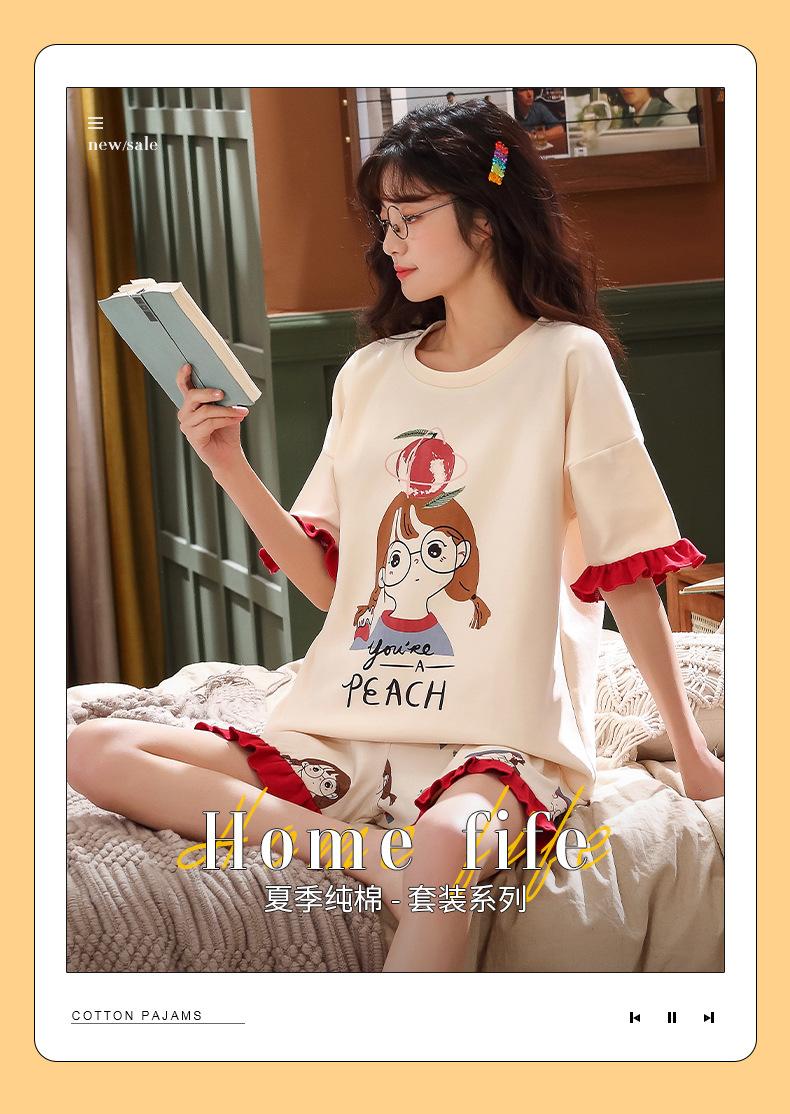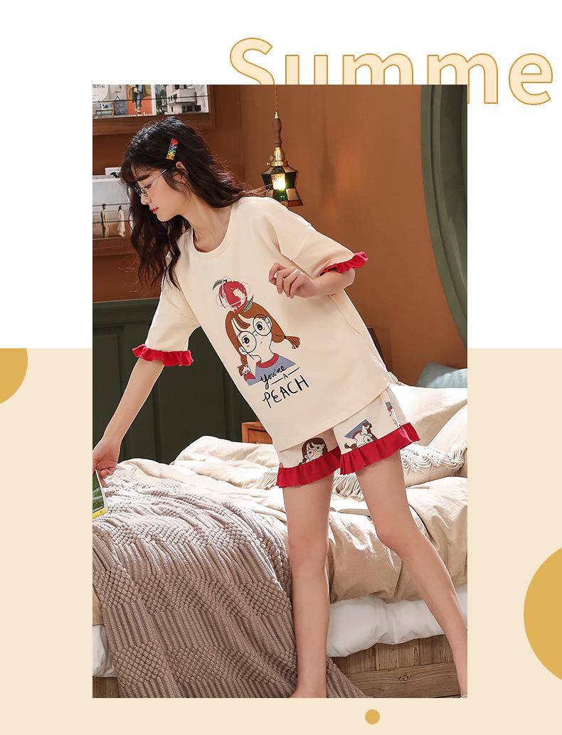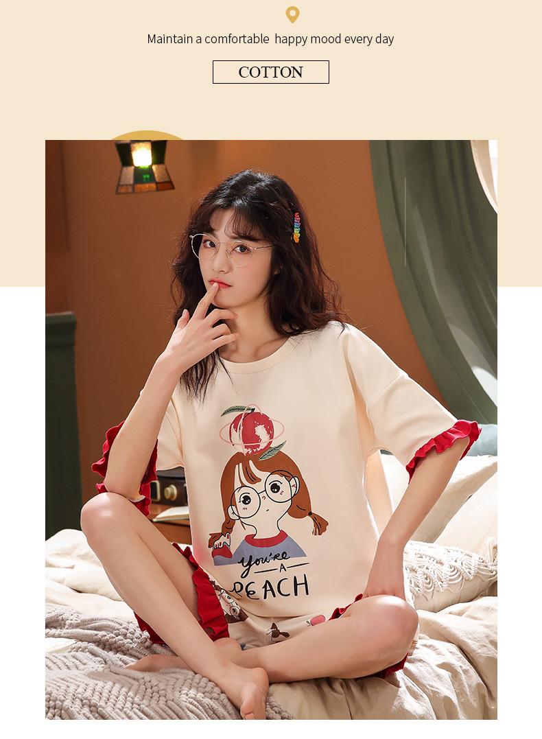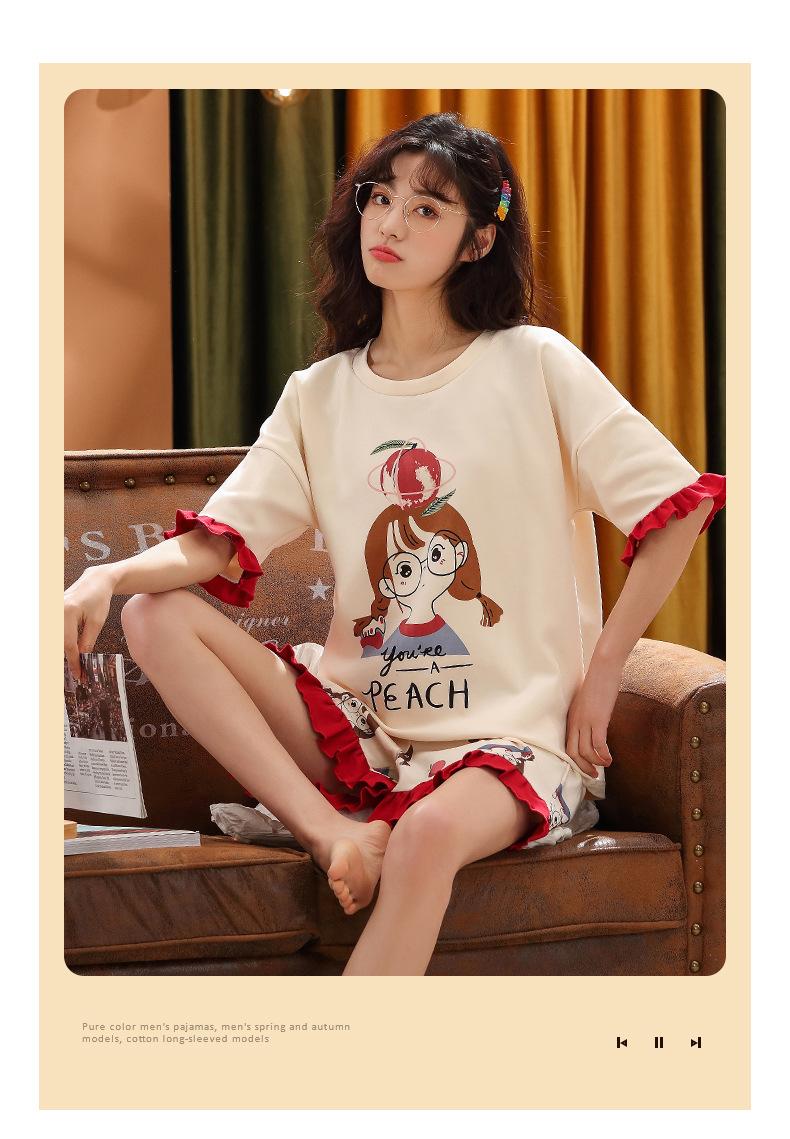 Pijamas de algodón 100% para mujer, ropa informal de manga corta con dibujos animados, para el hogar, verano 2024
