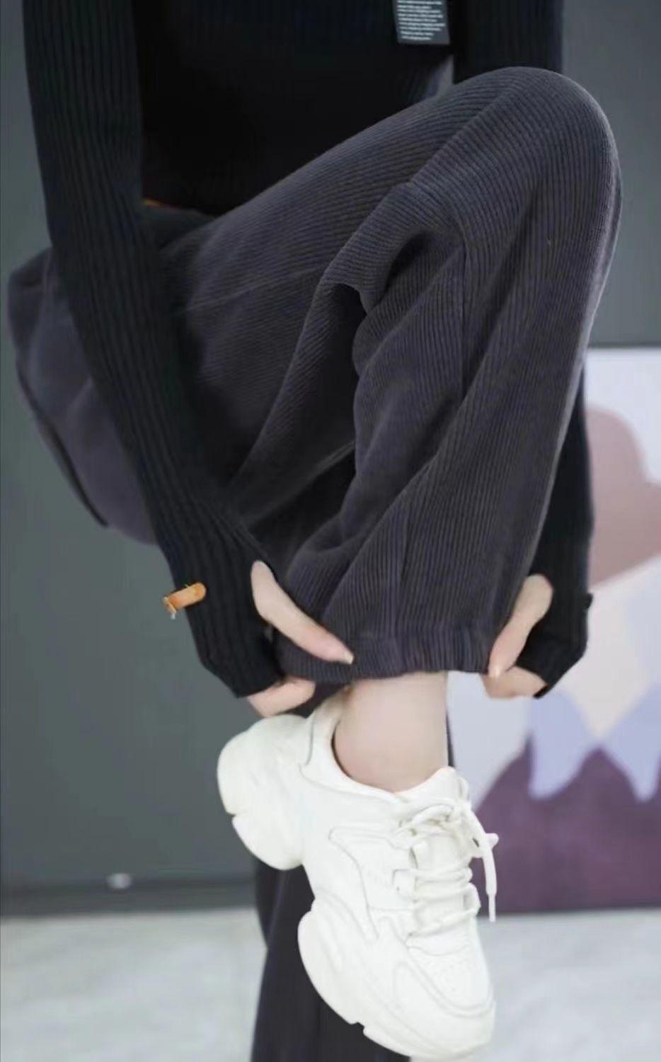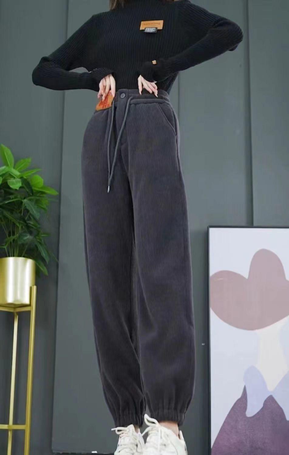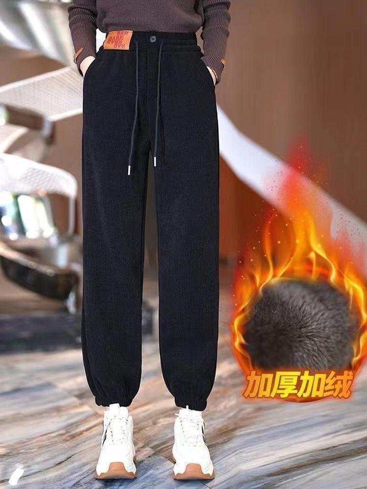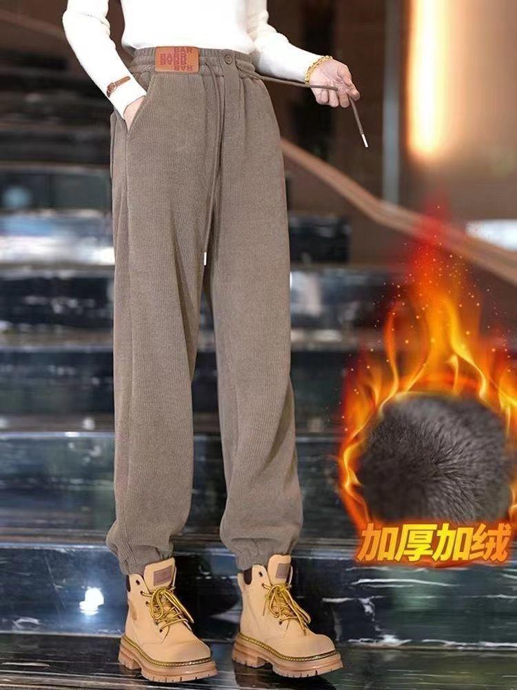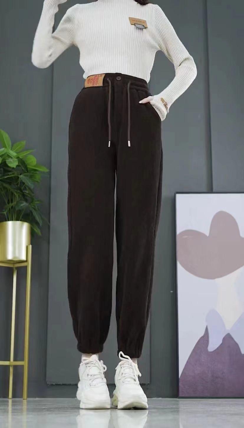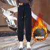 Pantalones deportivos casuales de lana de cordero, holgados, de cintura alta, adelgazantes, con forro polar, para otoño e invierno, 2023