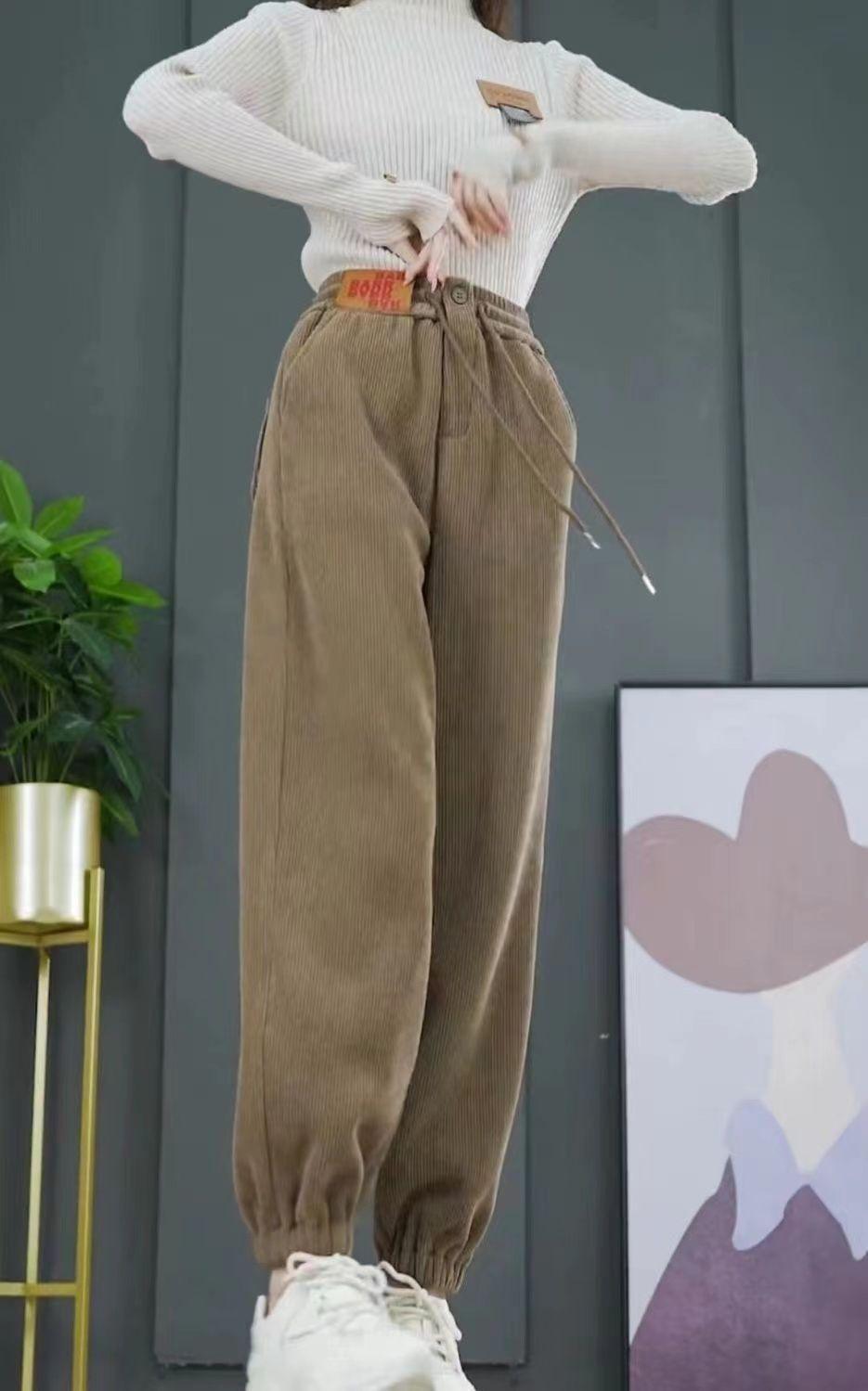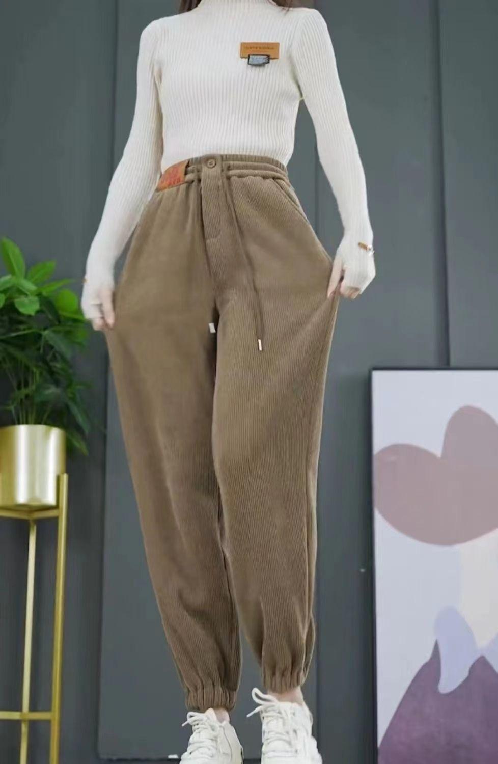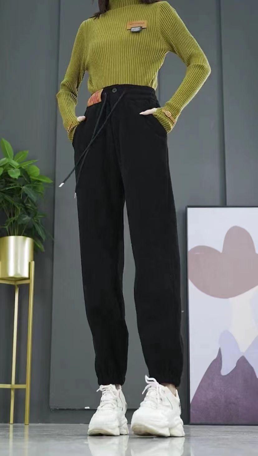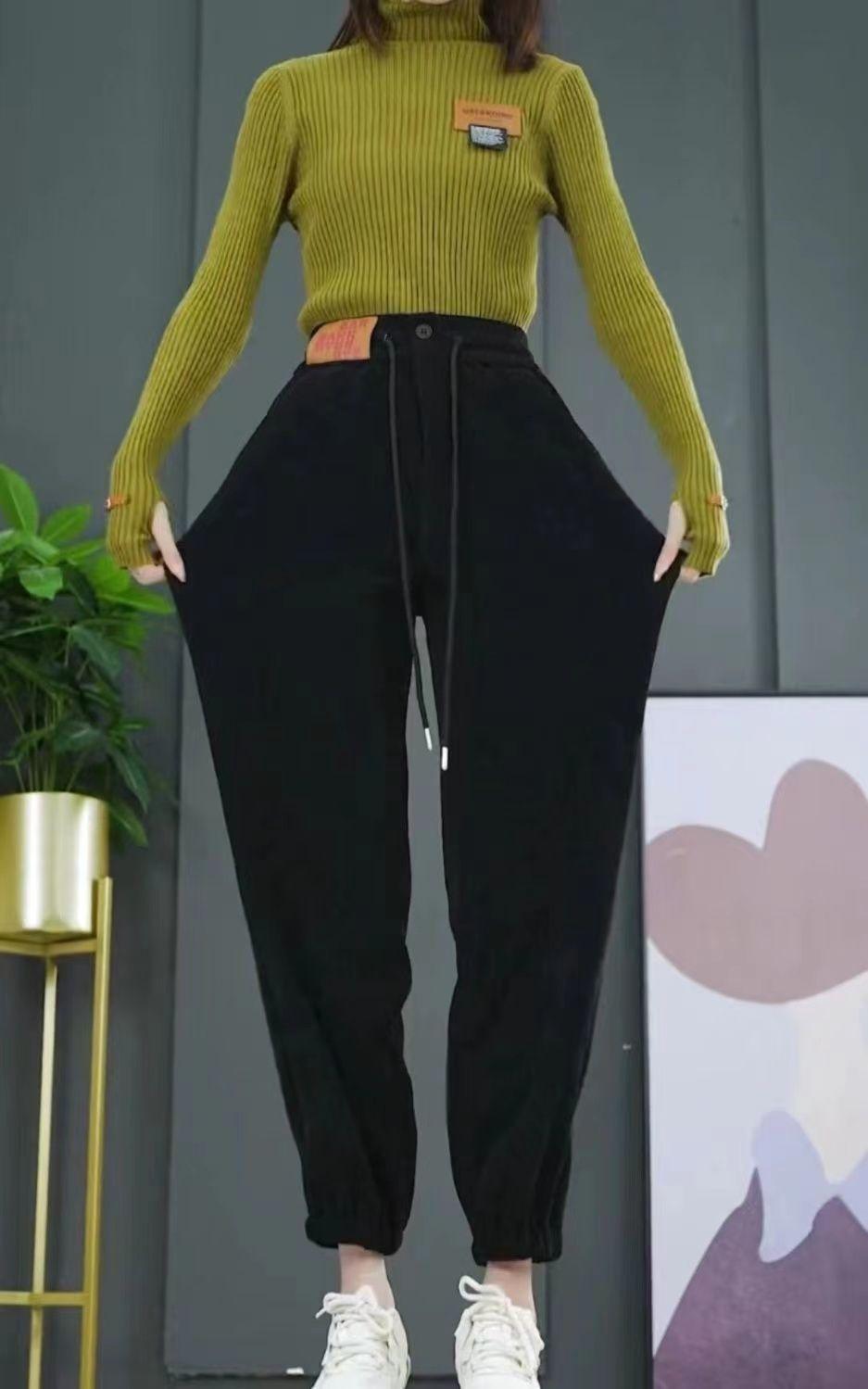 Pantalones deportivos casuales de lana de cordero, holgados, de cintura alta, adelgazantes, con forro polar, para otoño e invierno, 2023