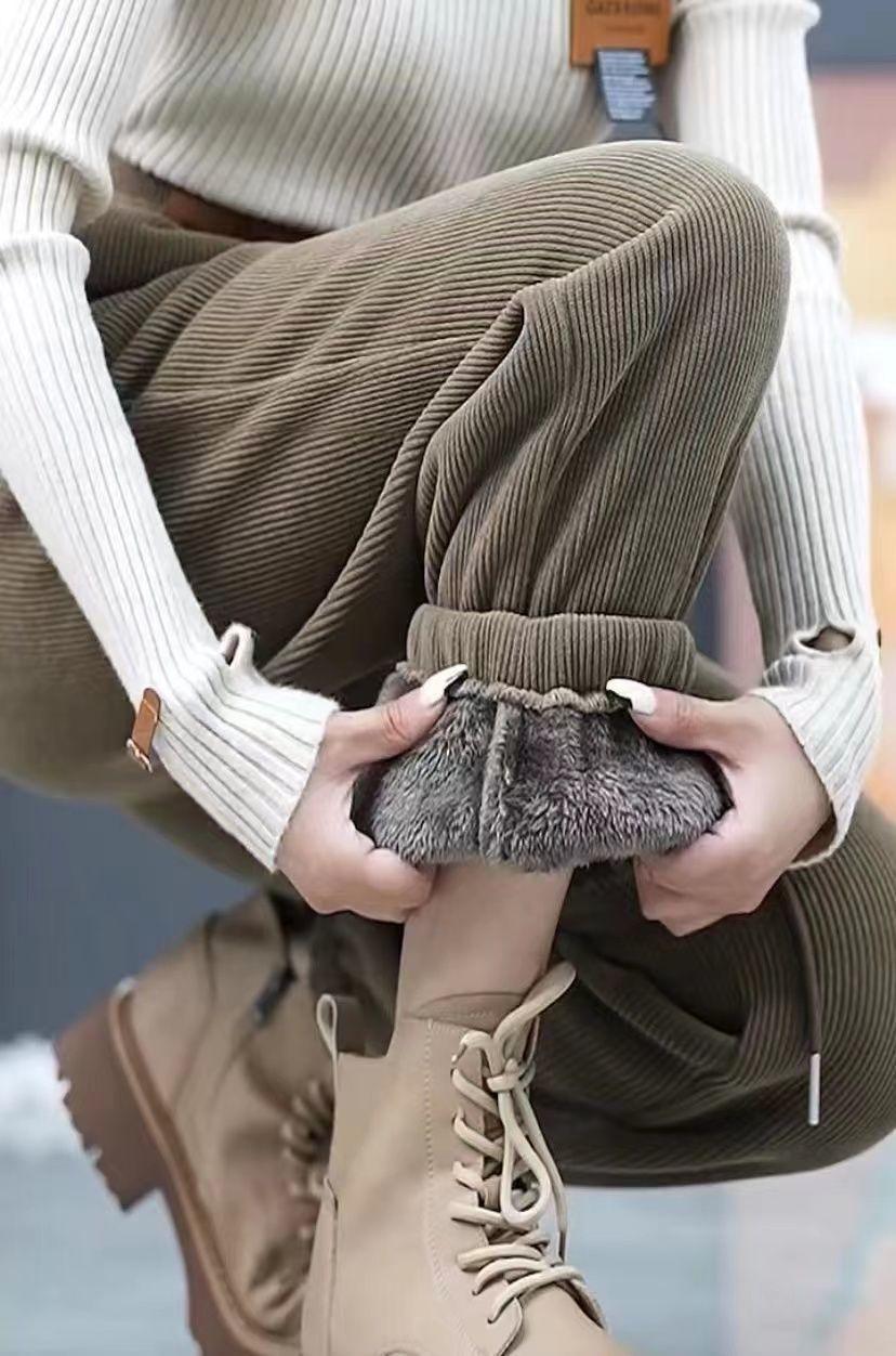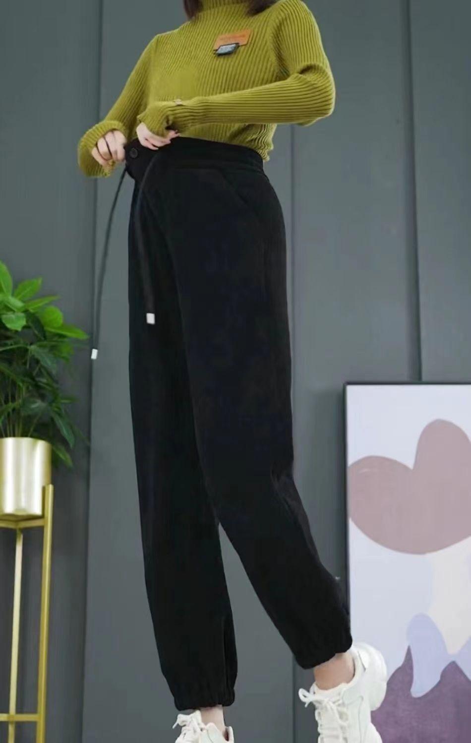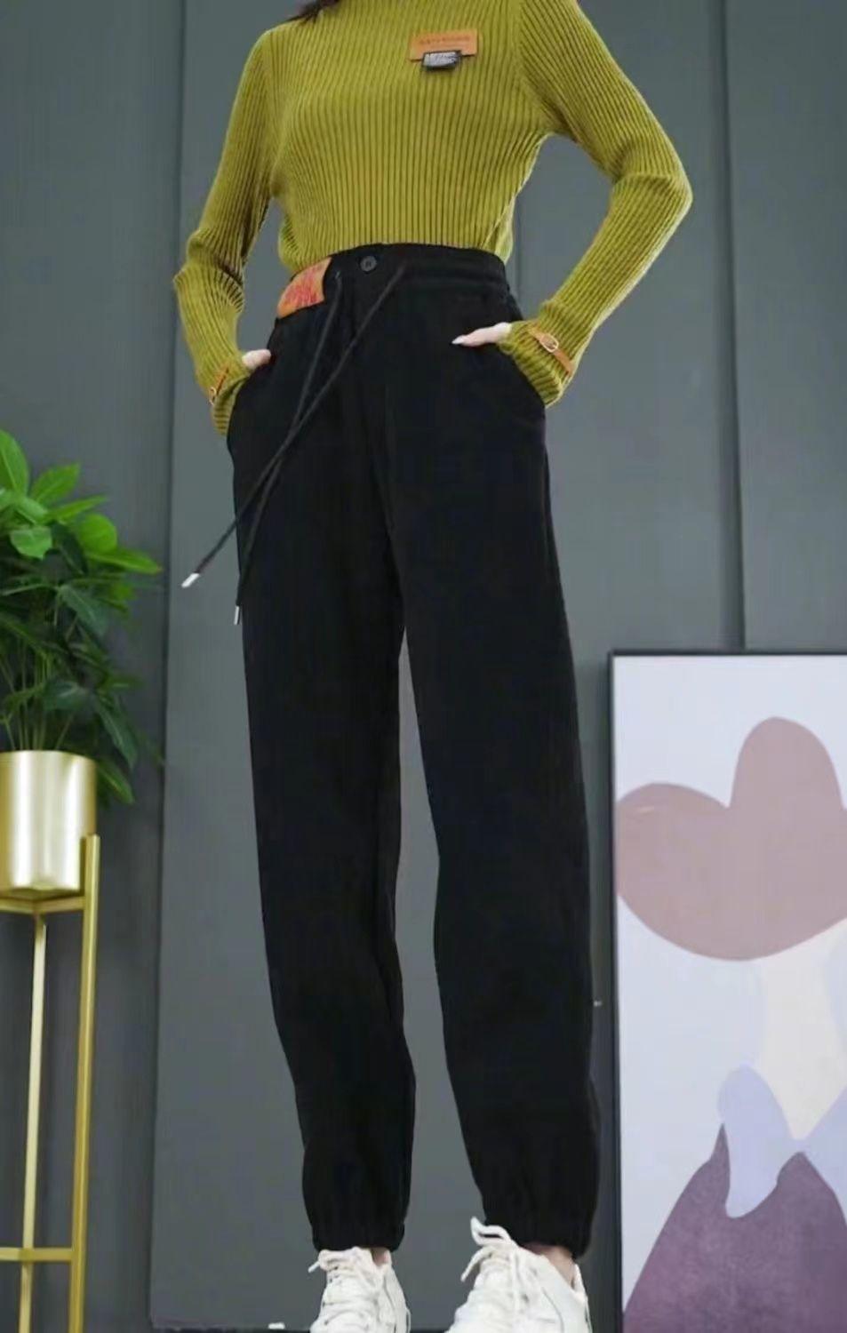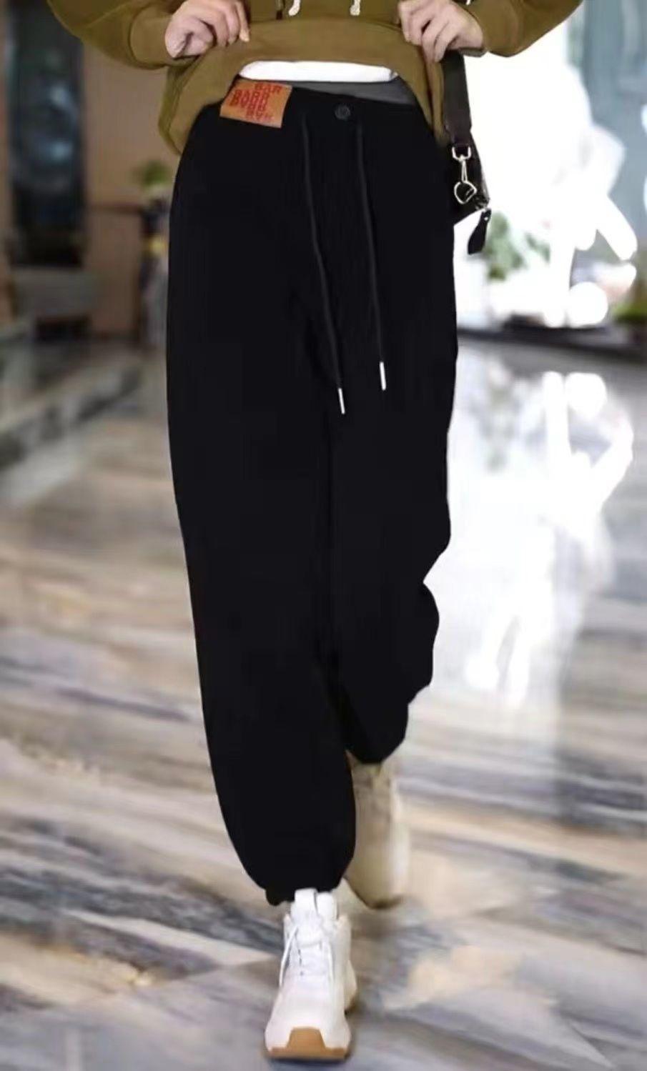 Pantalones deportivos casuales de lana de cordero, holgados, de cintura alta, adelgazantes, con forro polar, para otoño e invierno, 2023