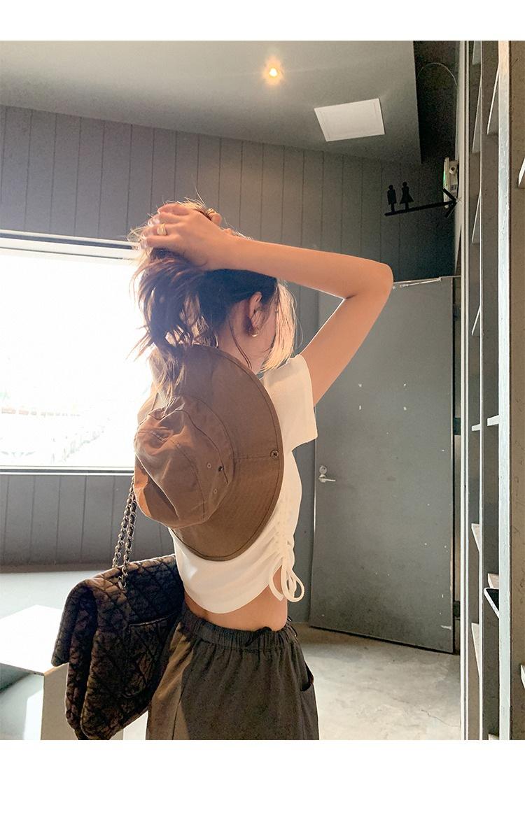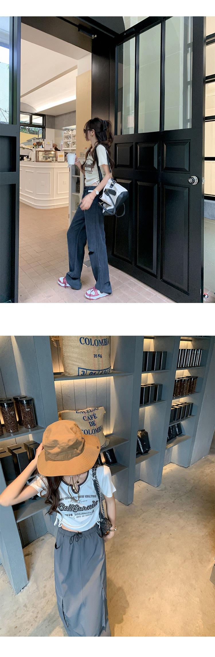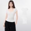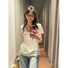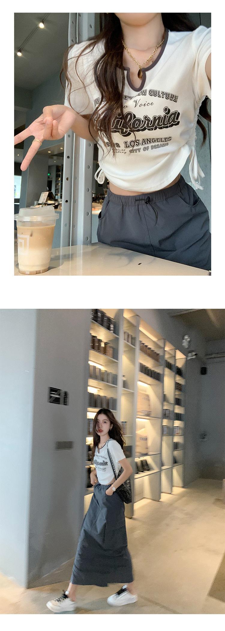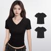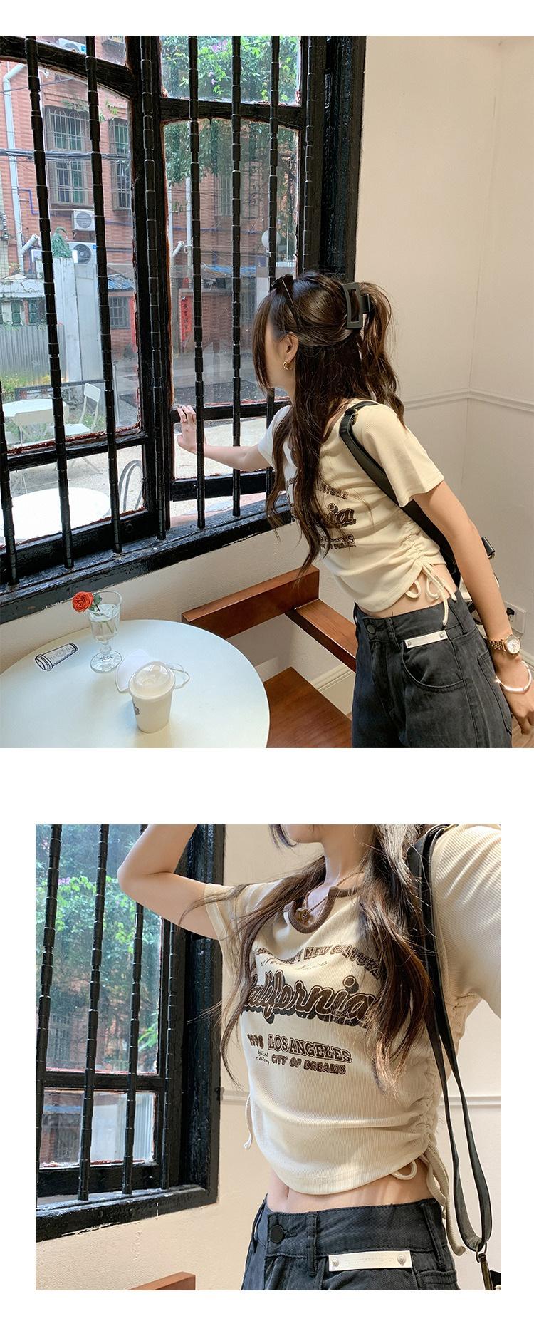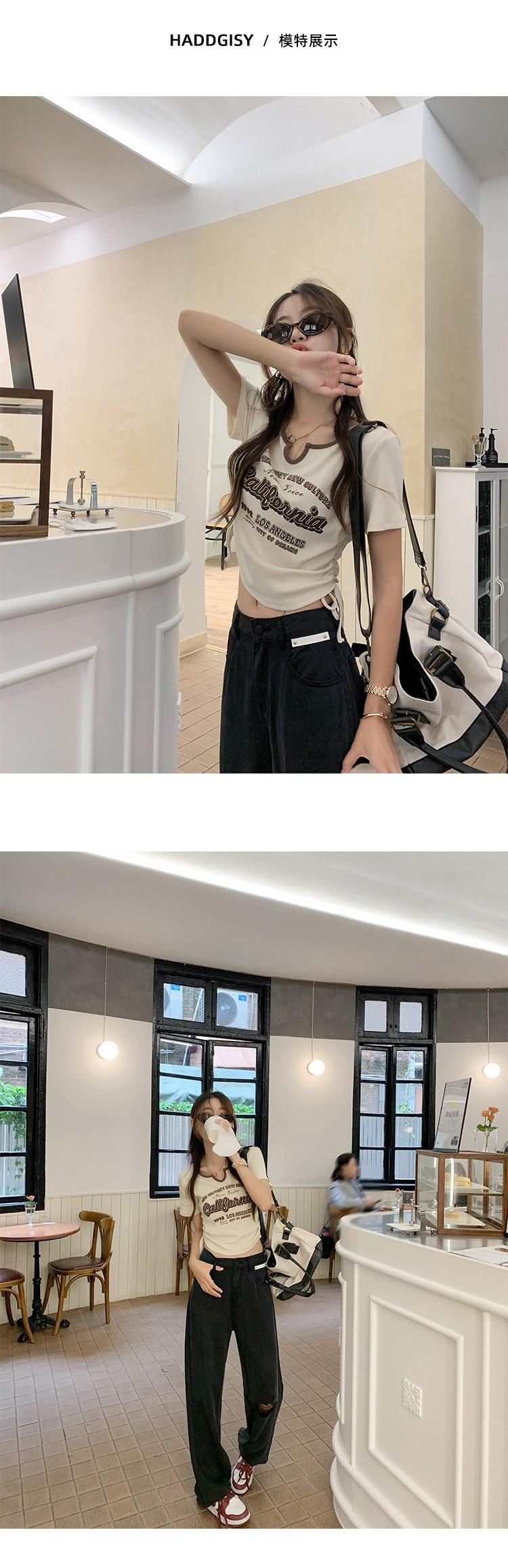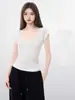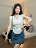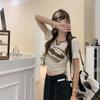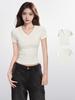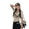 Camiseta corta con estampado de cordón para mujer, de manga corta, novedad de verano 2024, diseño Sense, cintura alta, hombros adelgazantes, escote en V, top de moda