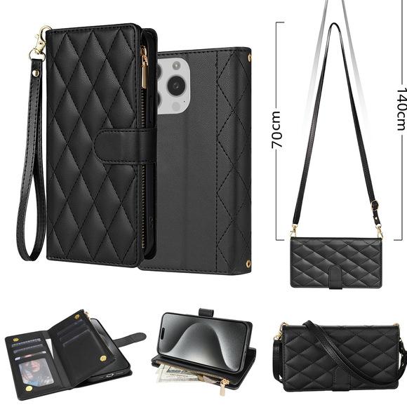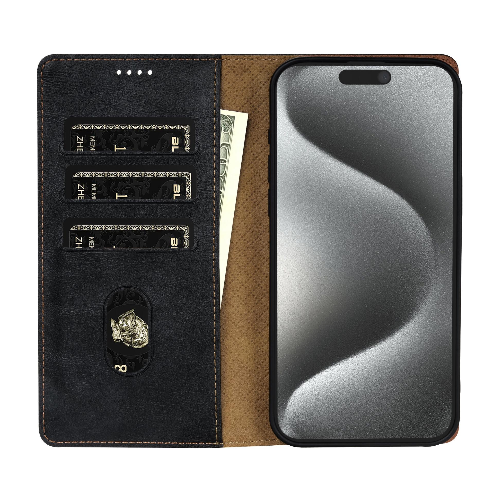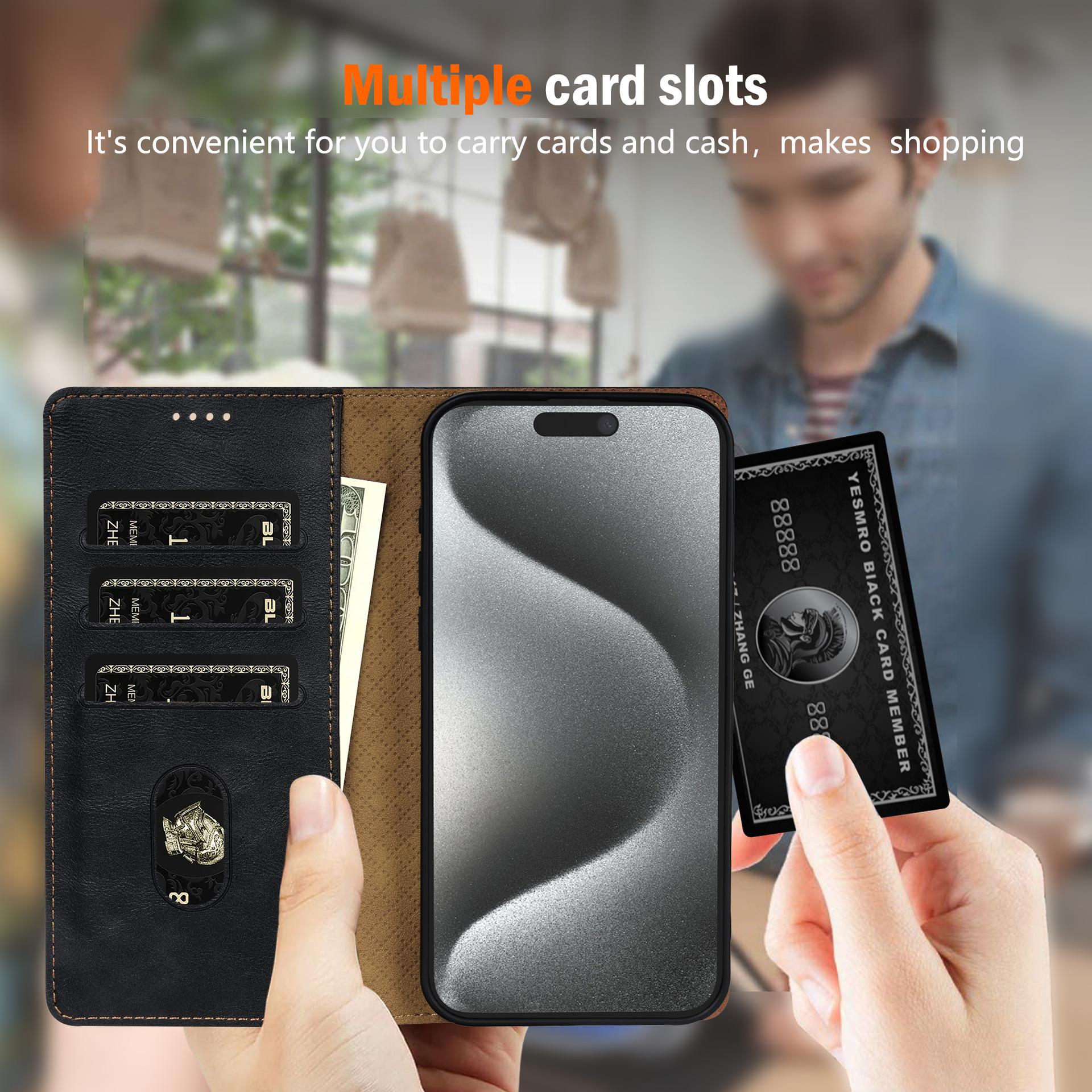 【Características] : Material simple y práctico, resistente al desgaste y duradero, inserción de tarjetas, cordón magnético, cremallera.
