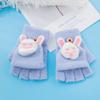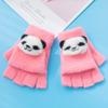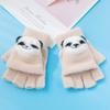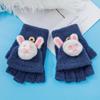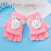 Guantes cálidos de otoño e invierno para niños y niñas, resistentes al frío, con tapa abatible, de medio dedo, de felpa, de punto con dibujos animados