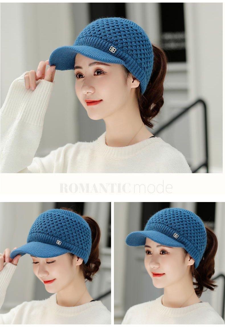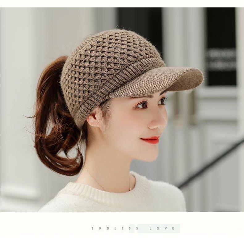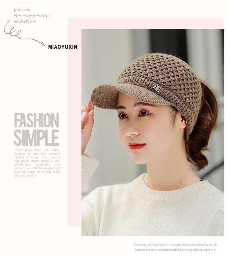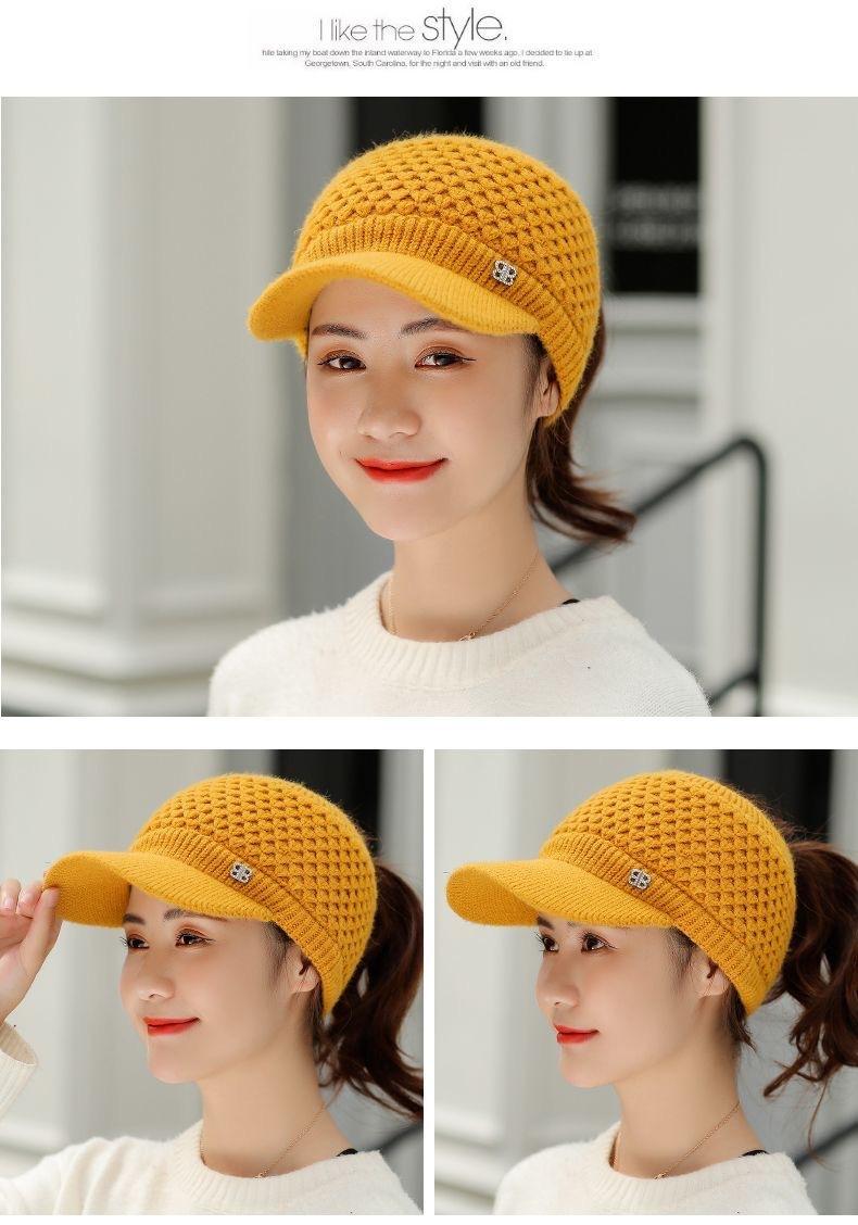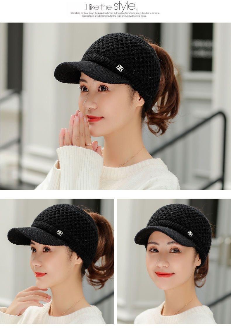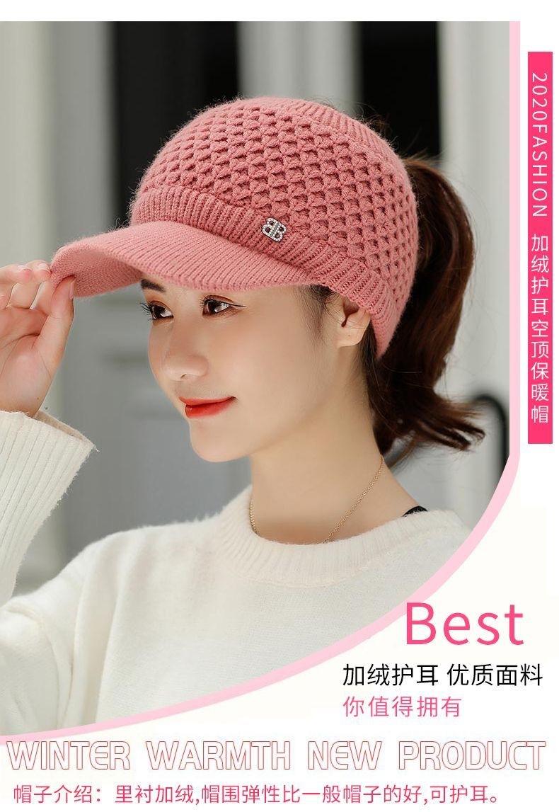 Gorro de Lana K-Style de Celebridad de Internet Trendy con Copa Vacía para Niñas en Otoño e Invierno, Gorro de Punto Grueso y Cálido, Gorro de Pato para Correr al Aire Libre