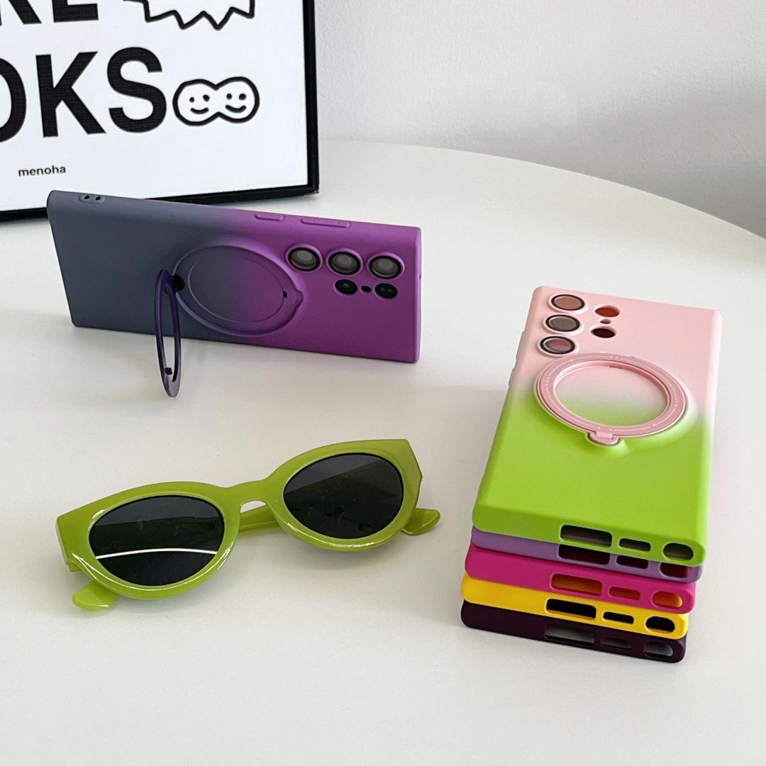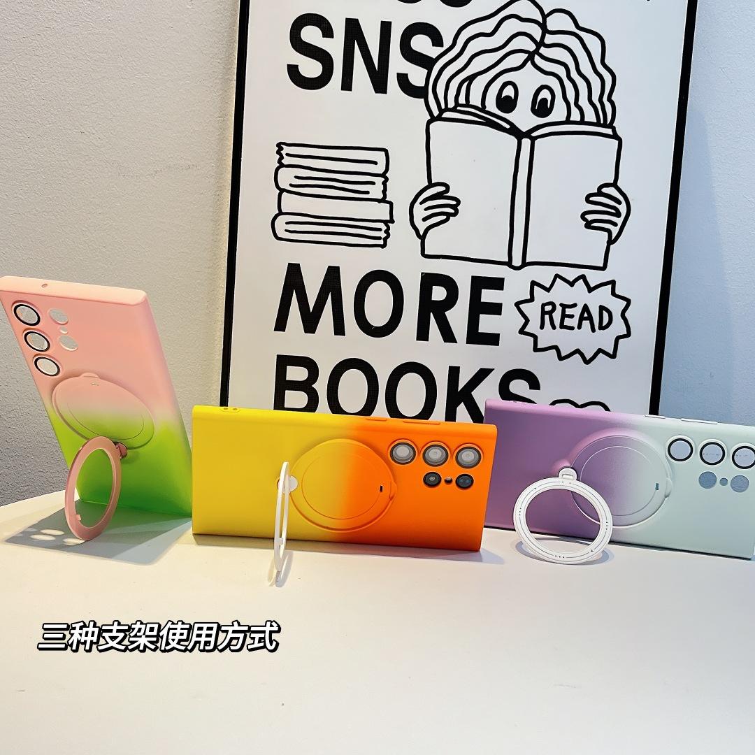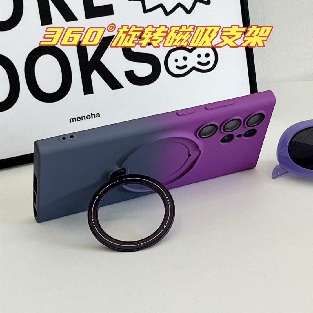 Funda para teléfono móvil Samsung S23 con soporte magnético ultra giratorio y degradado, funda protectora de silicona anticaídas, todo incluido