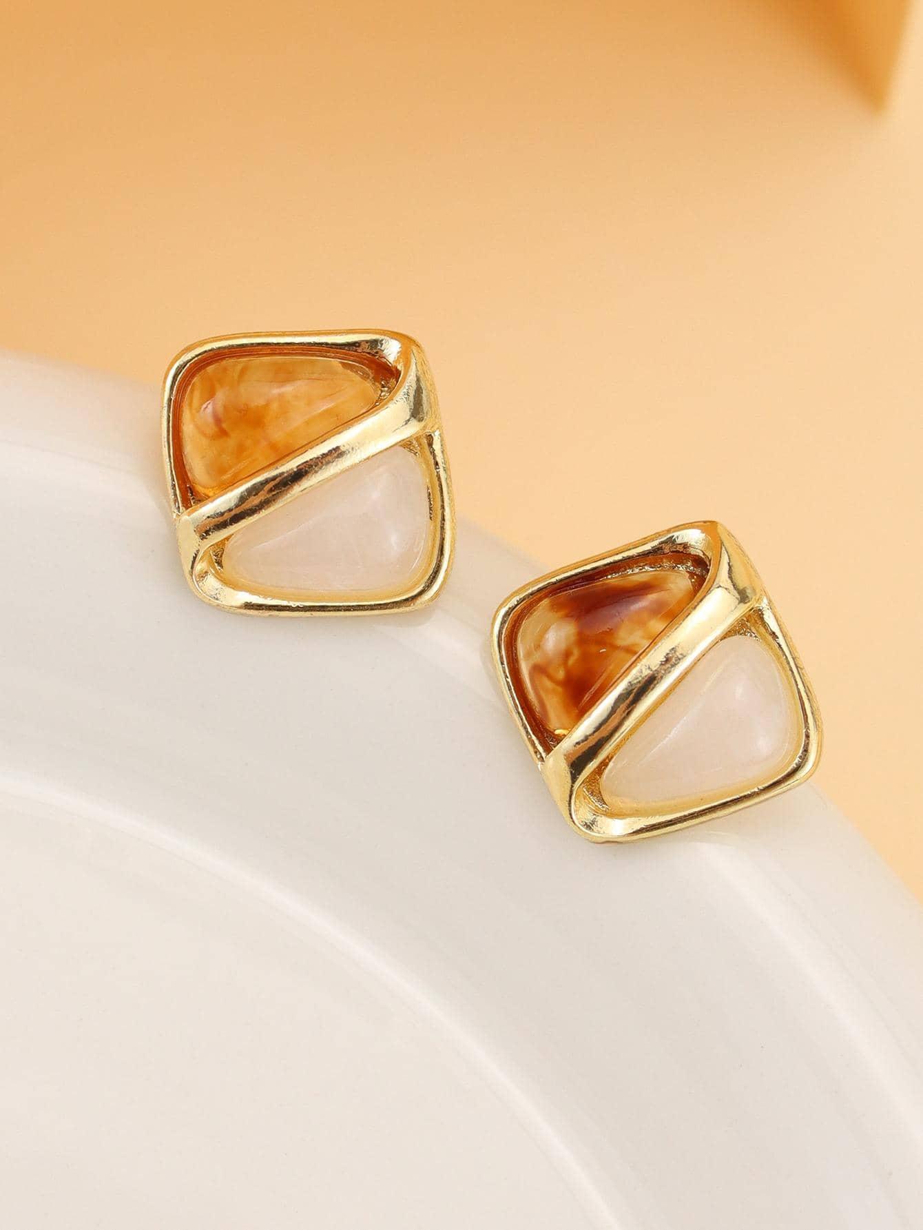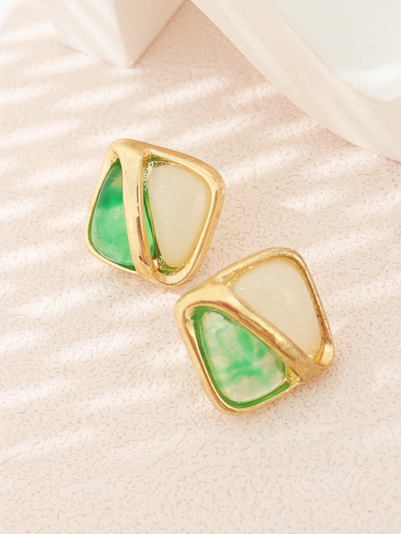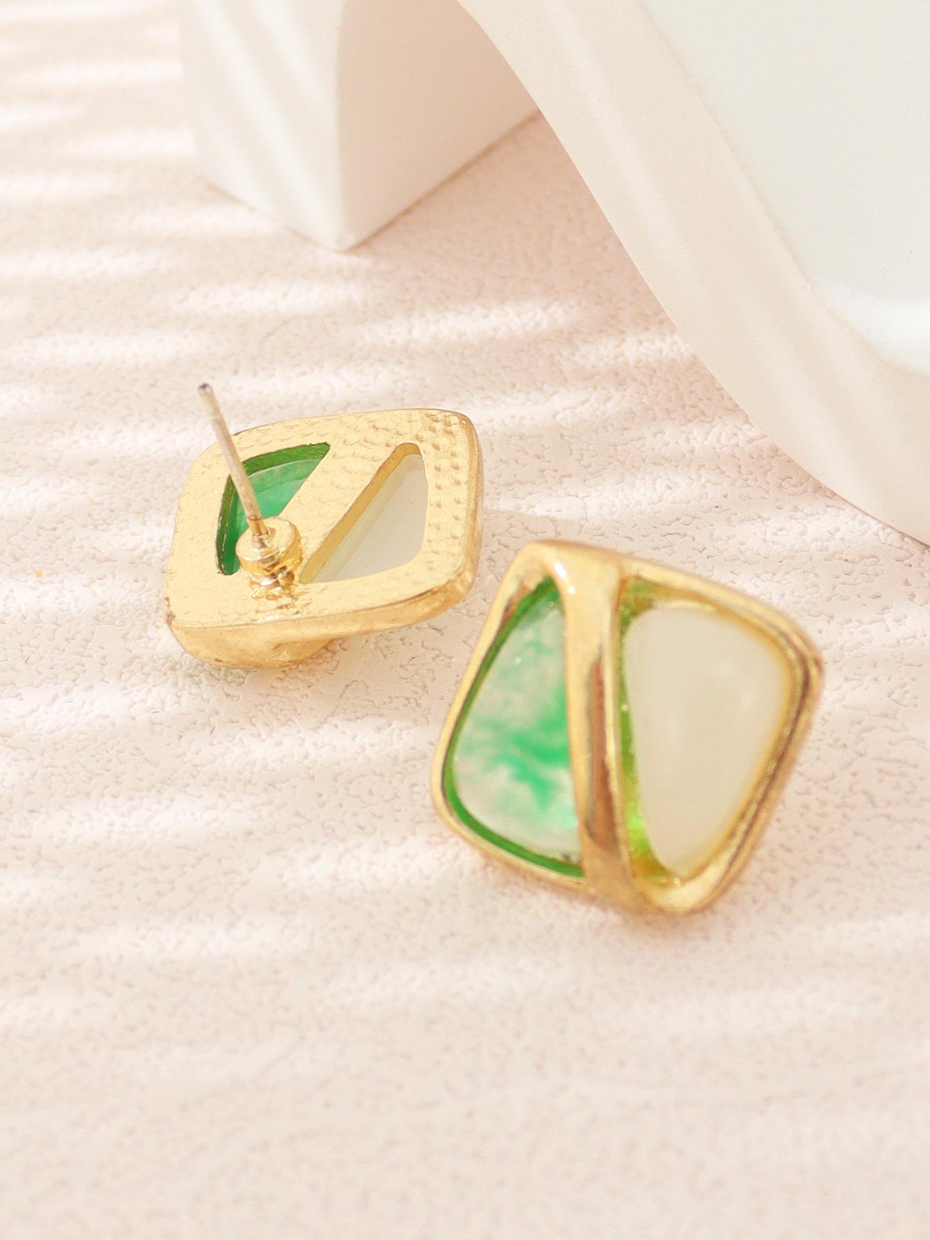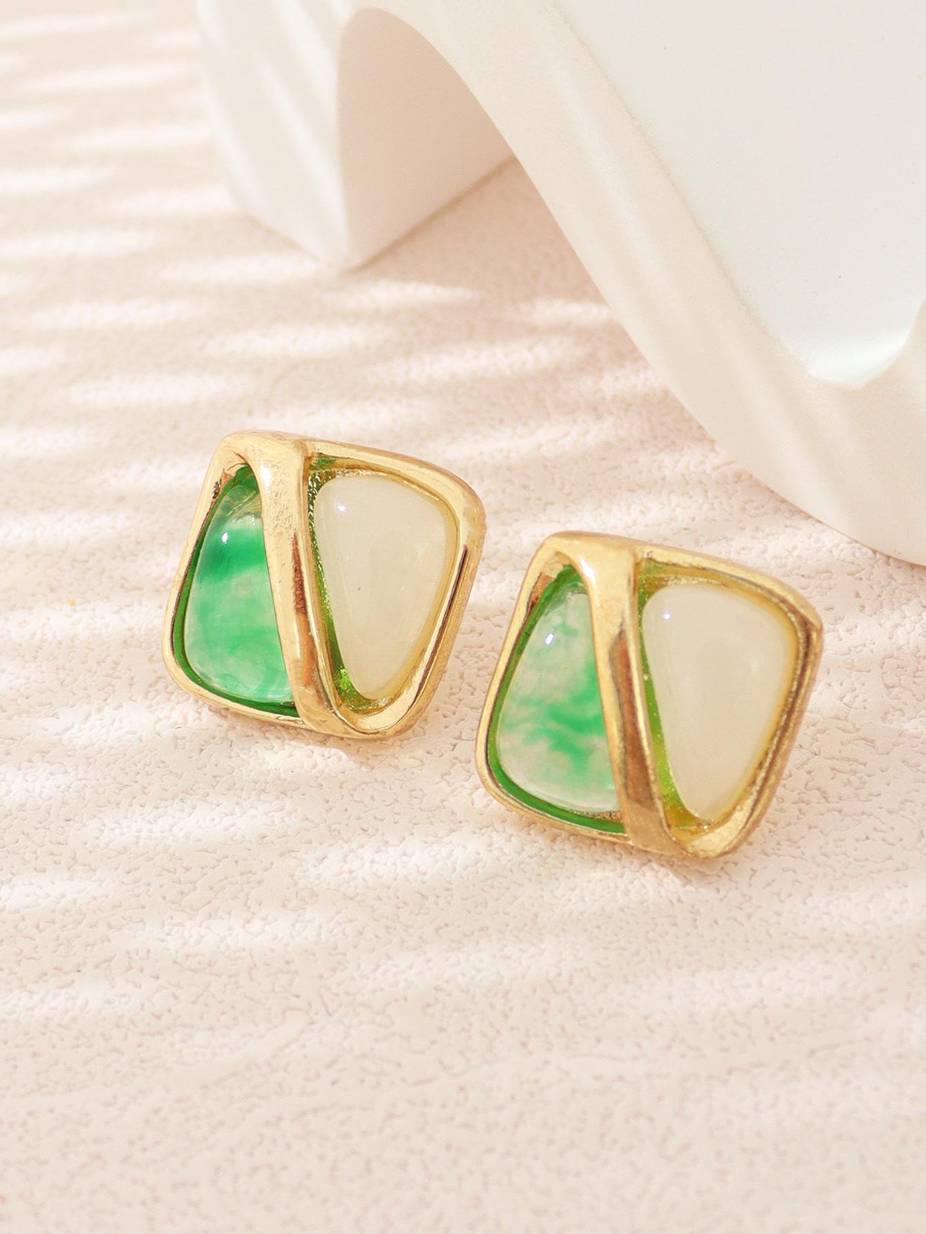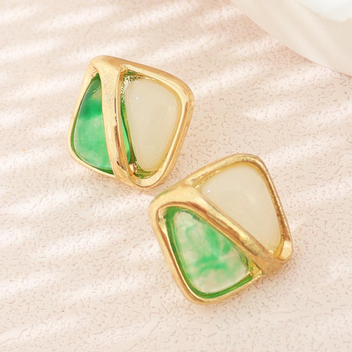 Pendientes verdes con personalidad geométrica retro transfronteriza de Europa y Estados Unidos, diseño de nicho de moda simple y de alto temperamento, joyería para las orejas