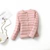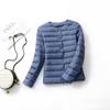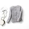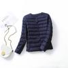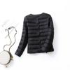 Chamarra de plumón ligera para mujer, corta, talla grande, cuello redondo, ropa interior, otoño e invierno, chamarra de plumón ligera sin cuello, abrigo cálido con forro