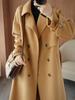 Invierno Nuevo Abrigo de Lana de Doble Vista Doble Botonadura Costuras Moda Personalidad Largo Hasta la Rodilla Abrigo de Lana