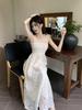 Vestido Dulce de Hada Francés Bordado Plisado de Tirantes 2024 Verano Nuevo Vestido Largo Ajustado a la Cintura
