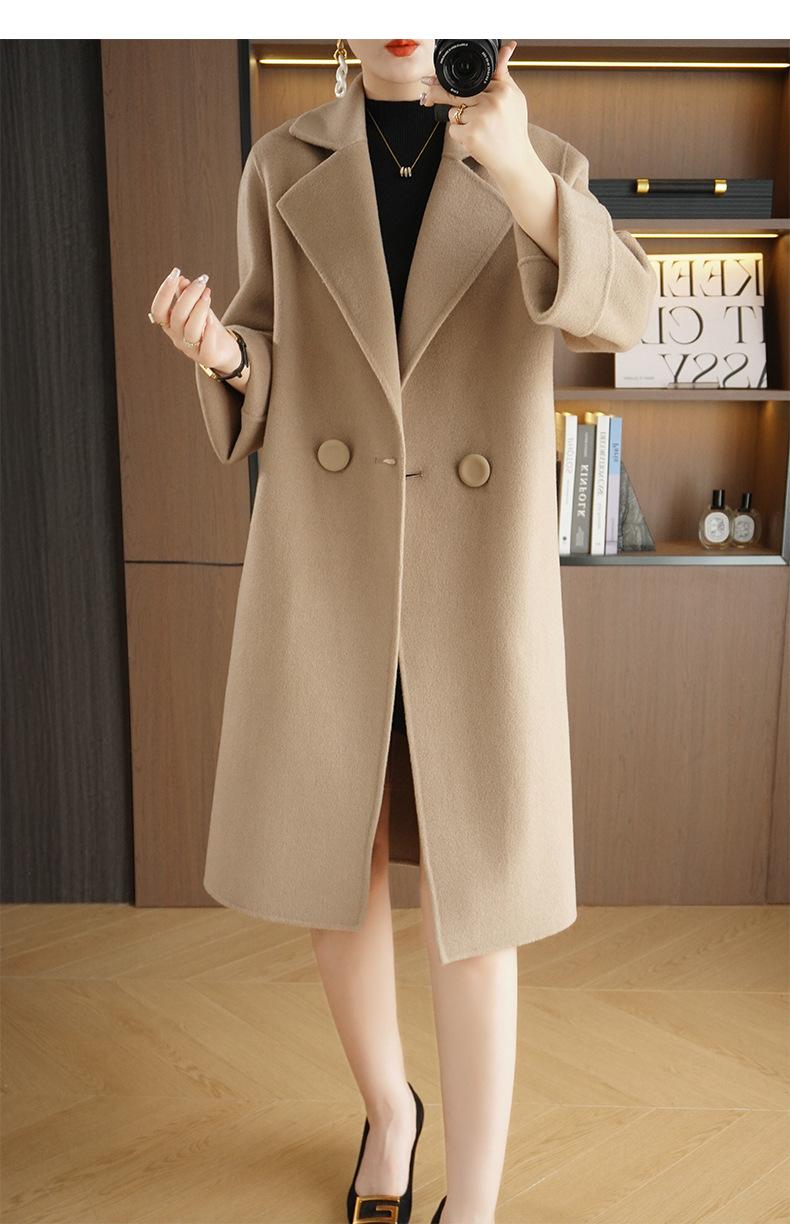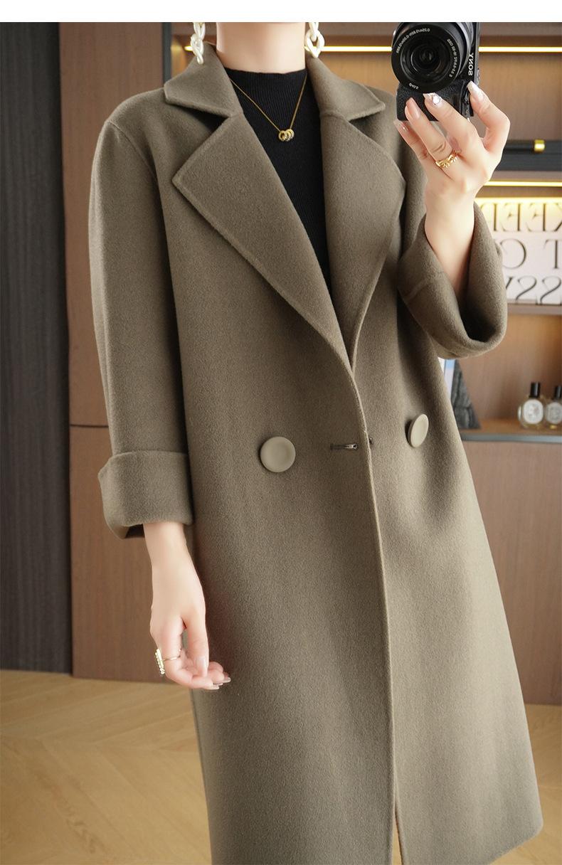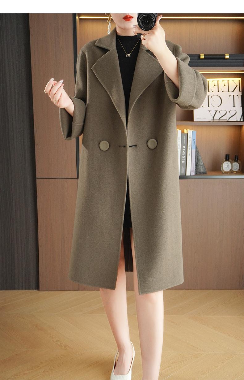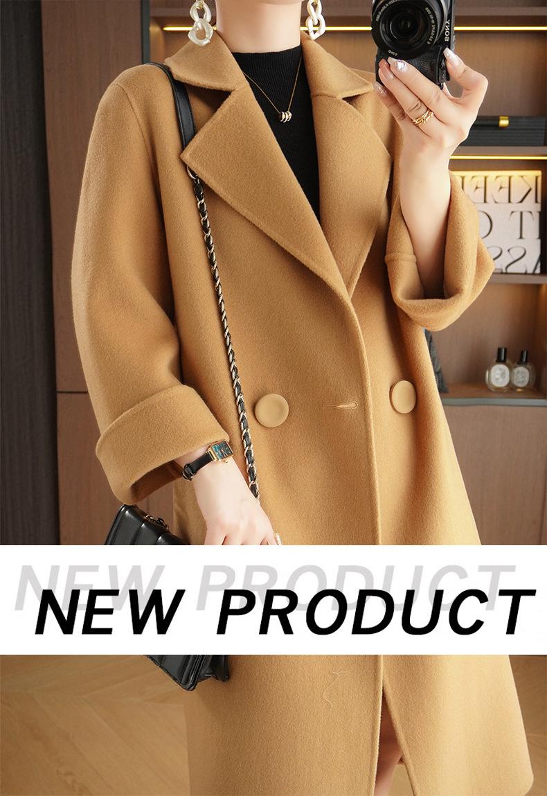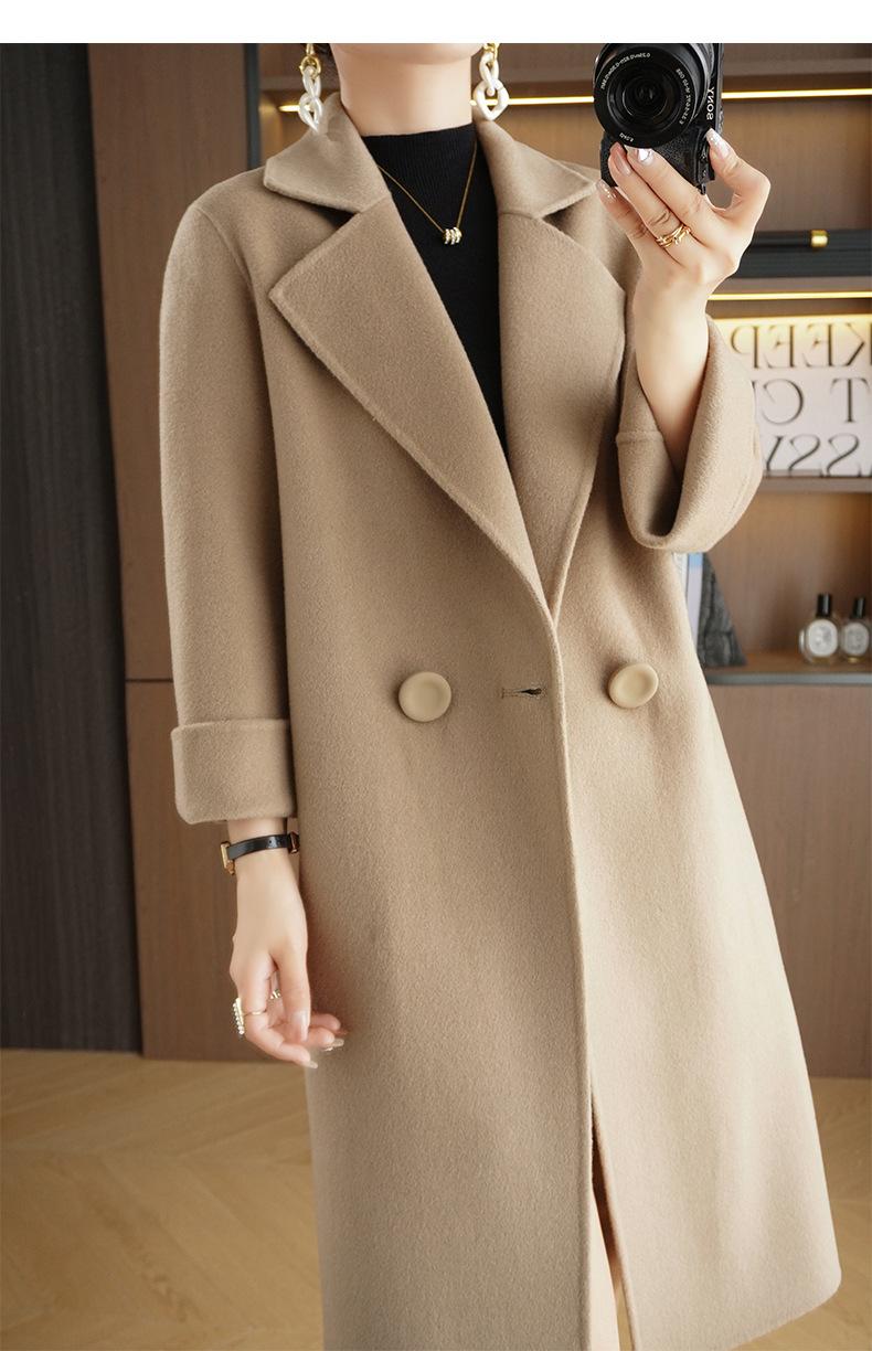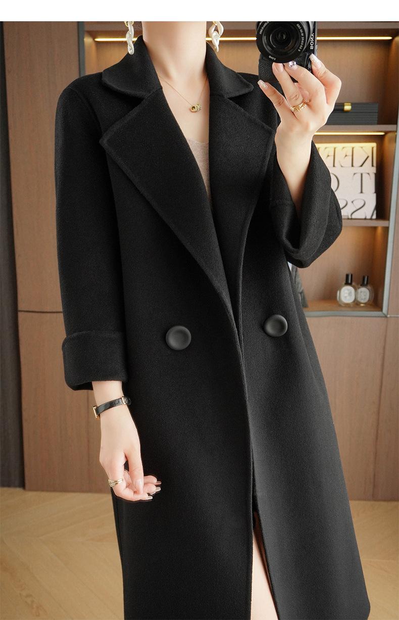 Abrigo Nuevo de Cachemira de Doble Vista para Mujer Petite Otoño/Invierno 2024, Elegante Abrigo de Lana de Largo Medio con un Aspecto Moderno y Grácil