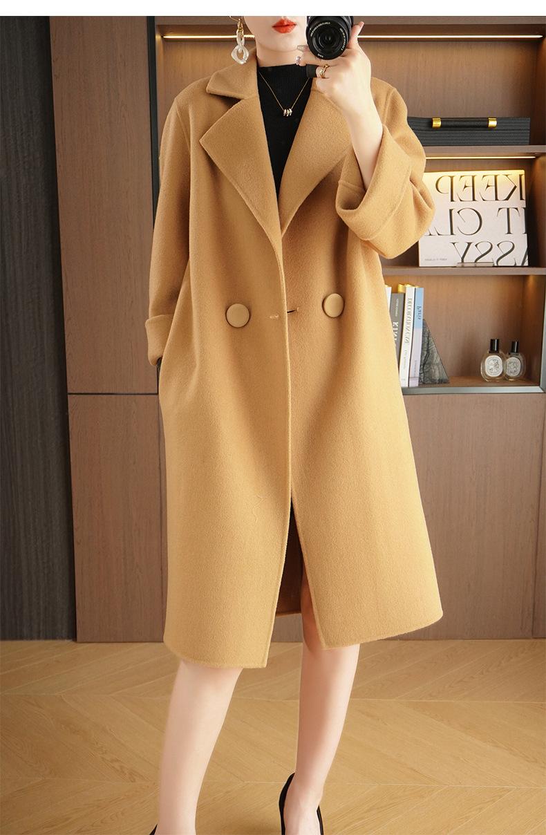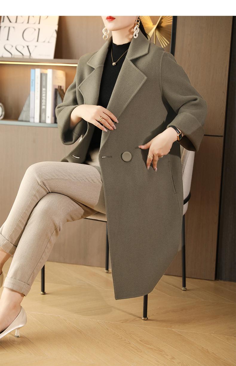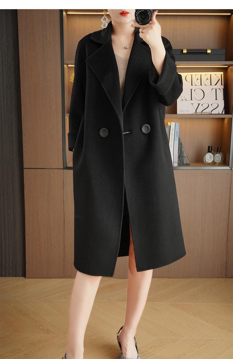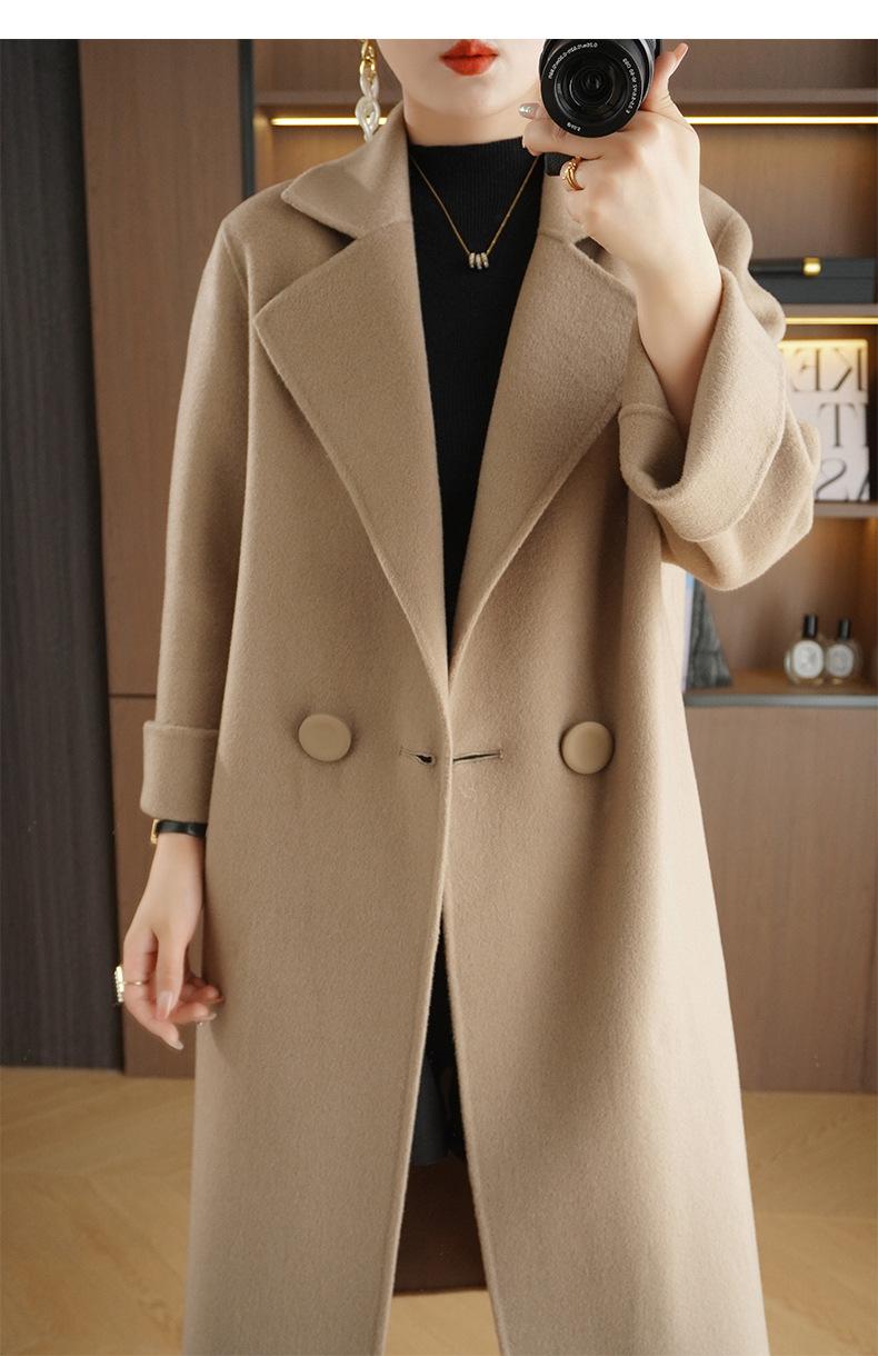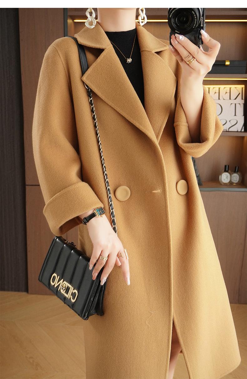 Abrigo Nuevo de Cachemira de Doble Vista para Mujer Petite Otoño/Invierno 2024, Elegante Abrigo de Lana de Largo Medio con un Aspecto Moderno y Grácil