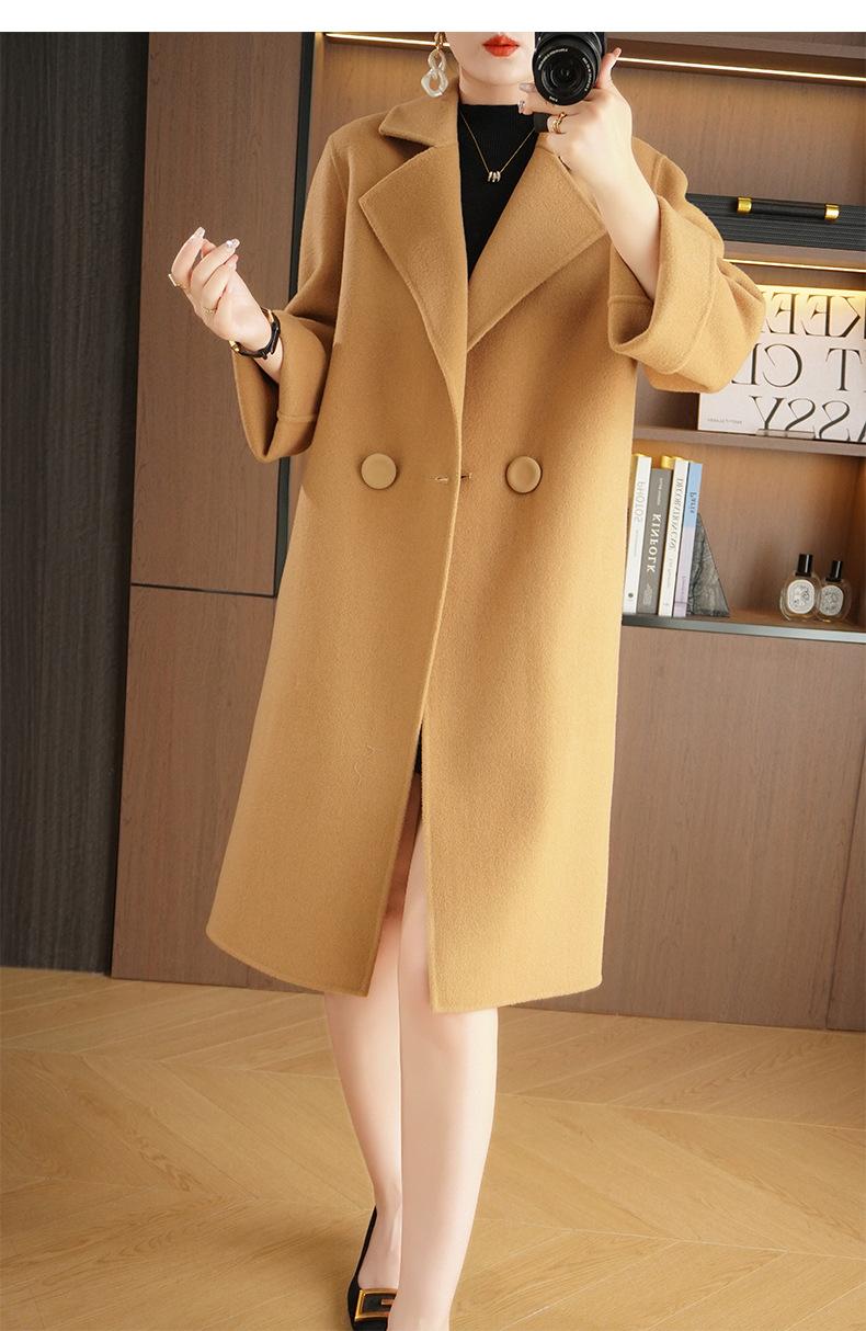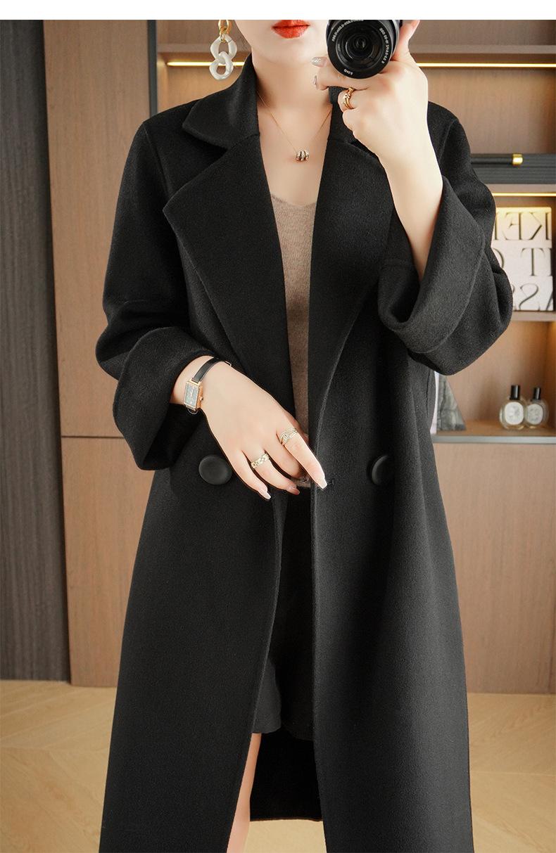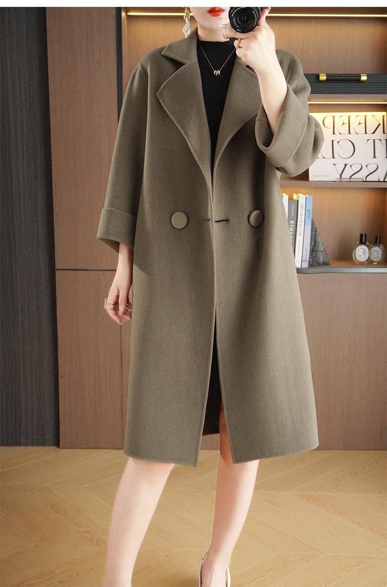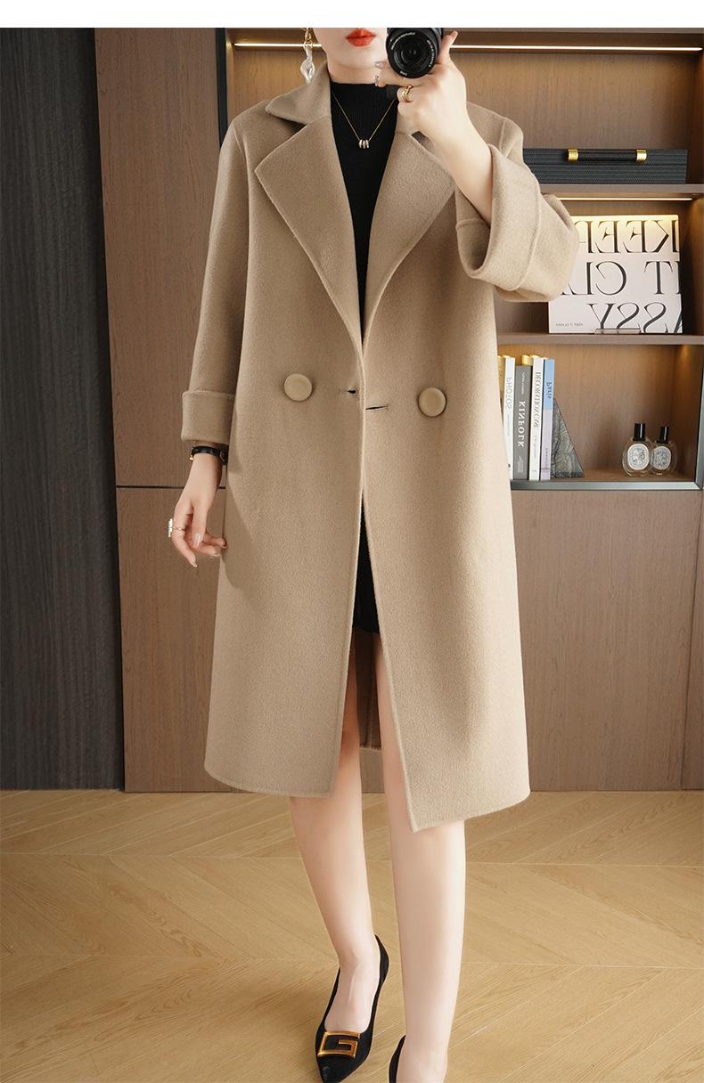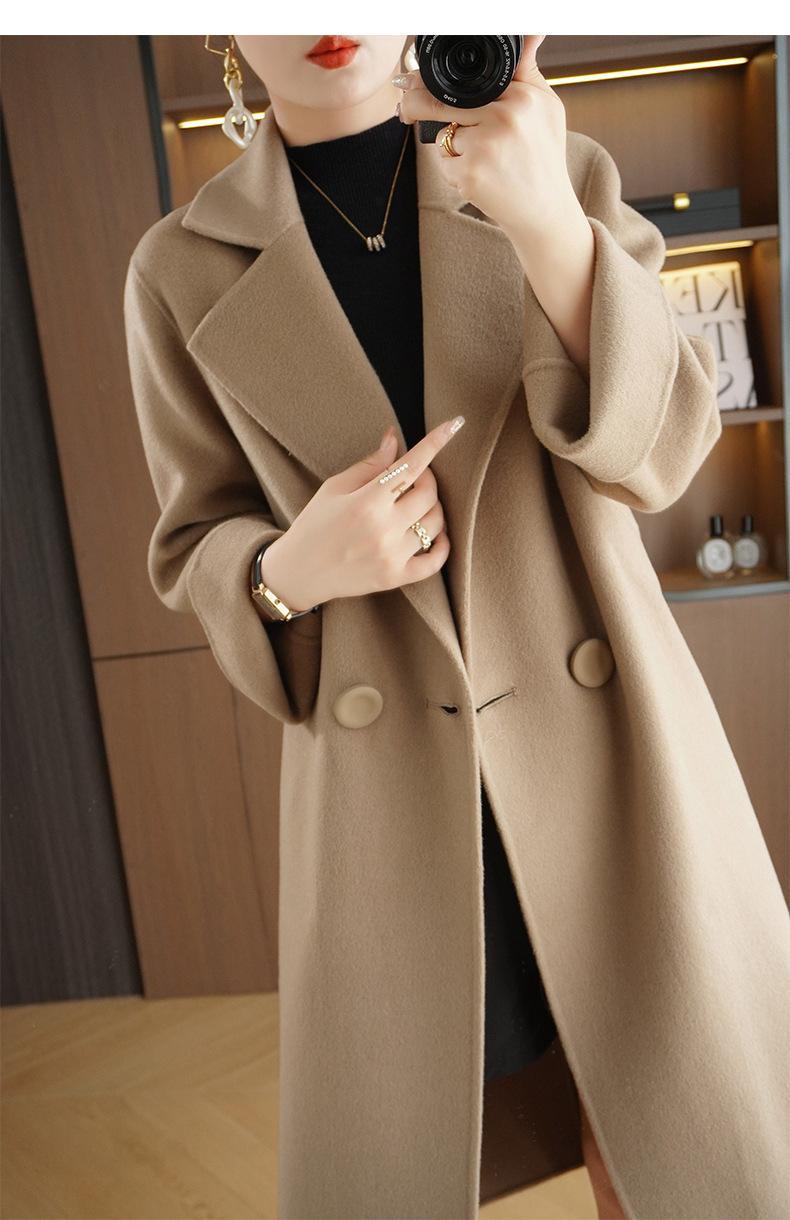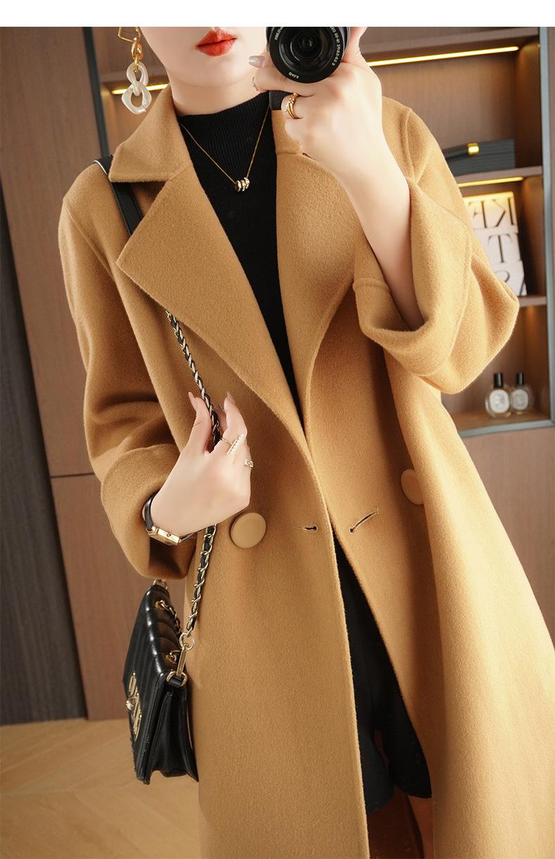 Abrigo Nuevo de Cachemira de Doble Vista para Mujer Petite Otoño/Invierno 2024, Elegante Abrigo de Lana de Largo Medio con un Aspecto Moderno y Grácil