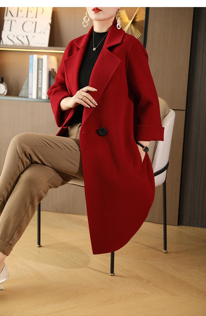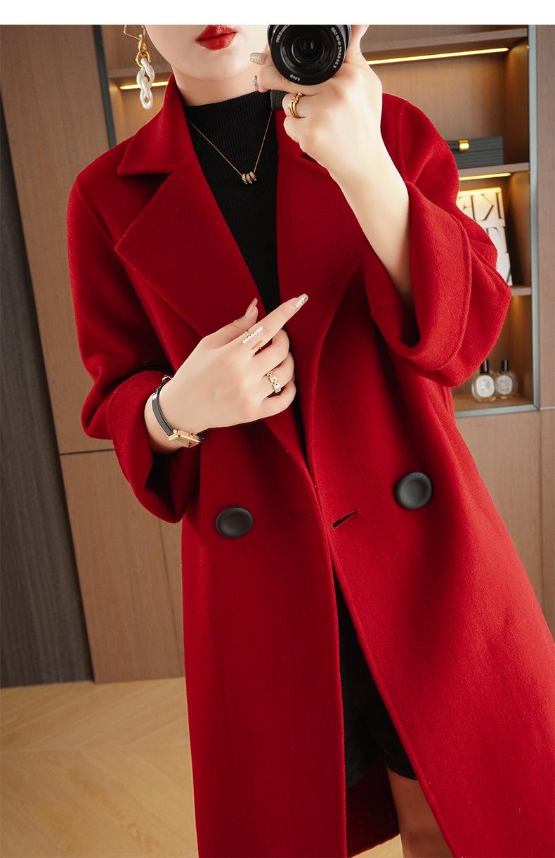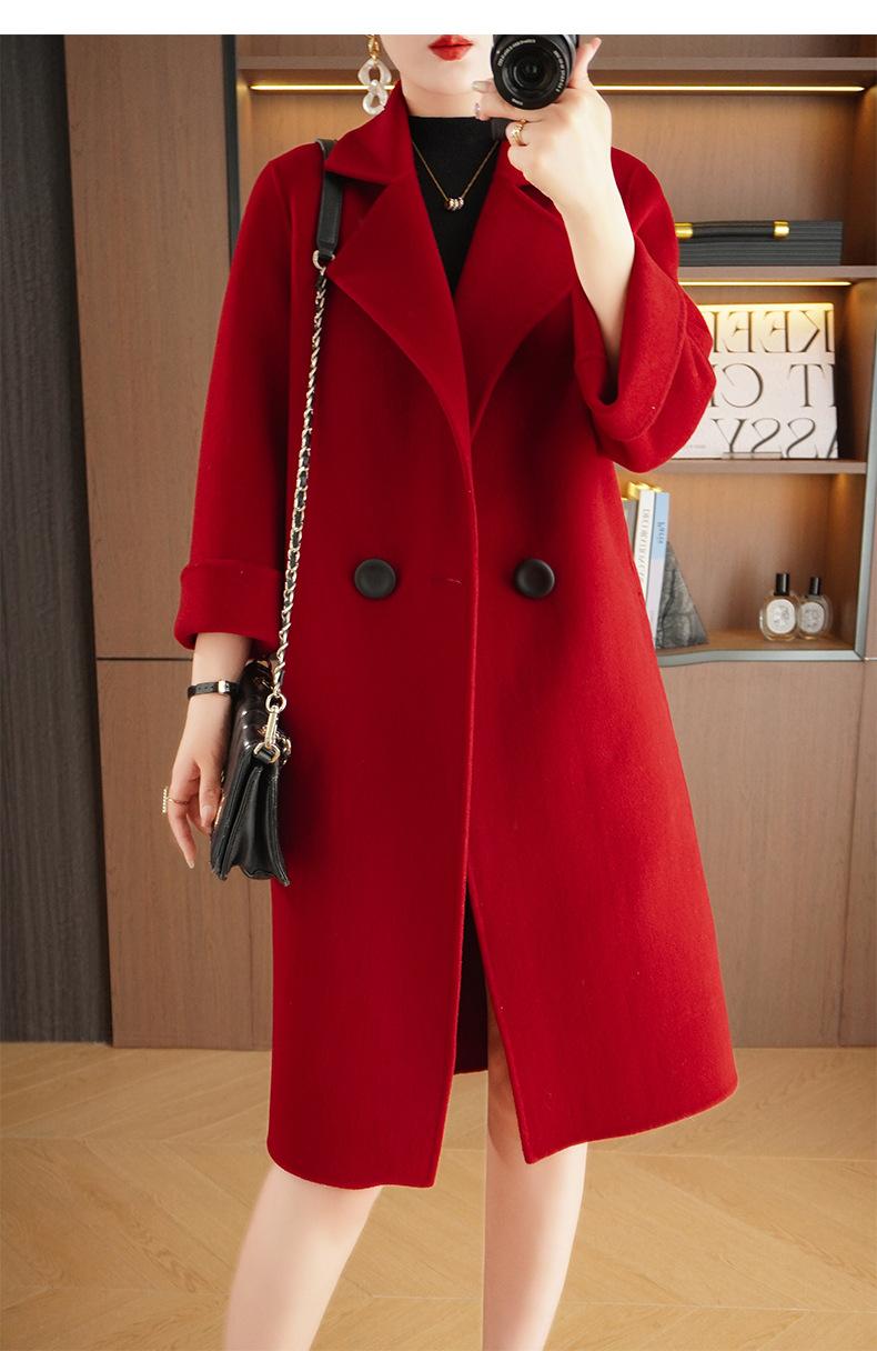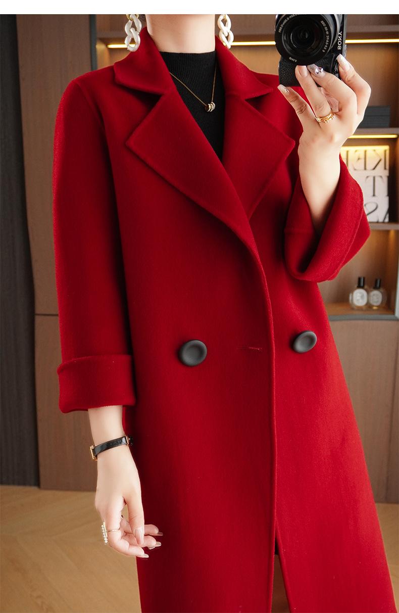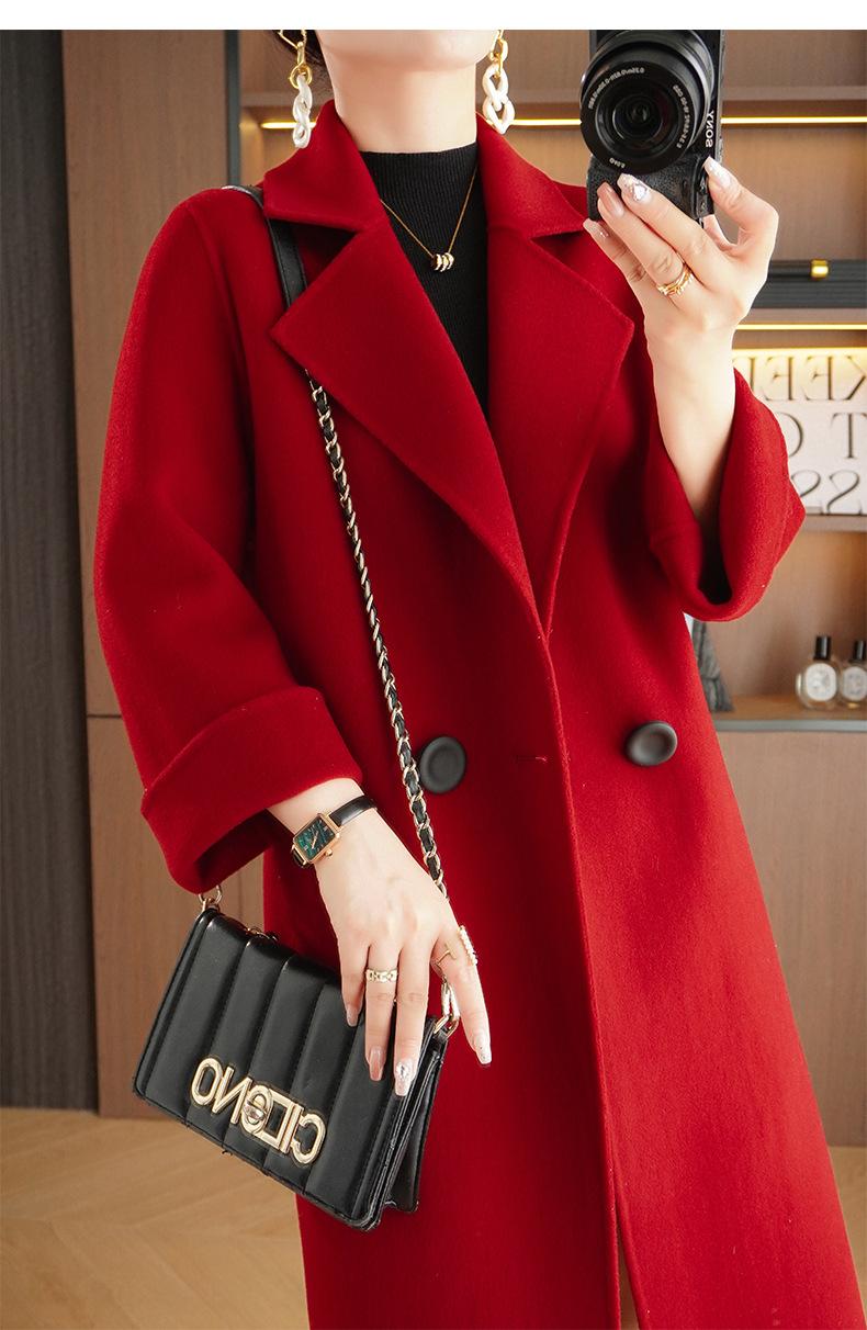 Abrigo Nuevo de Cachemira de Doble Vista para Mujer Petite Otoño/Invierno 2024, Elegante Abrigo de Lana de Largo Medio con un Aspecto Moderno y Grácil