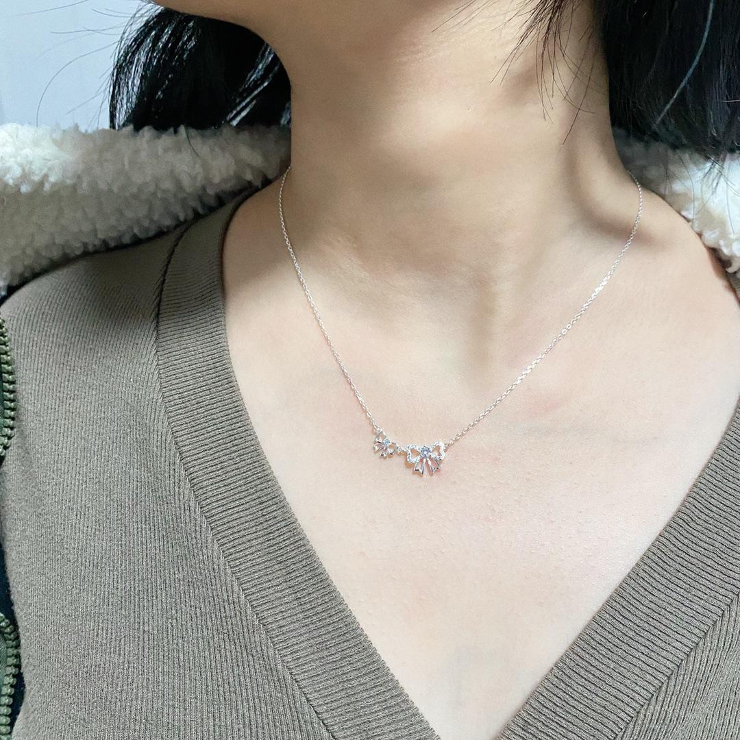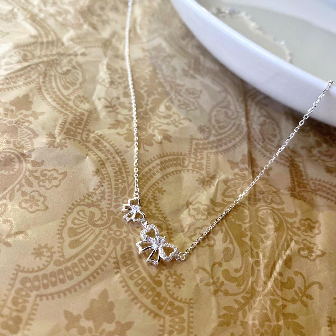 Collar de doble lazo de plata esterlina S925, diseño de nicho de lujo ligero, nuevo collar de clavícula de moda