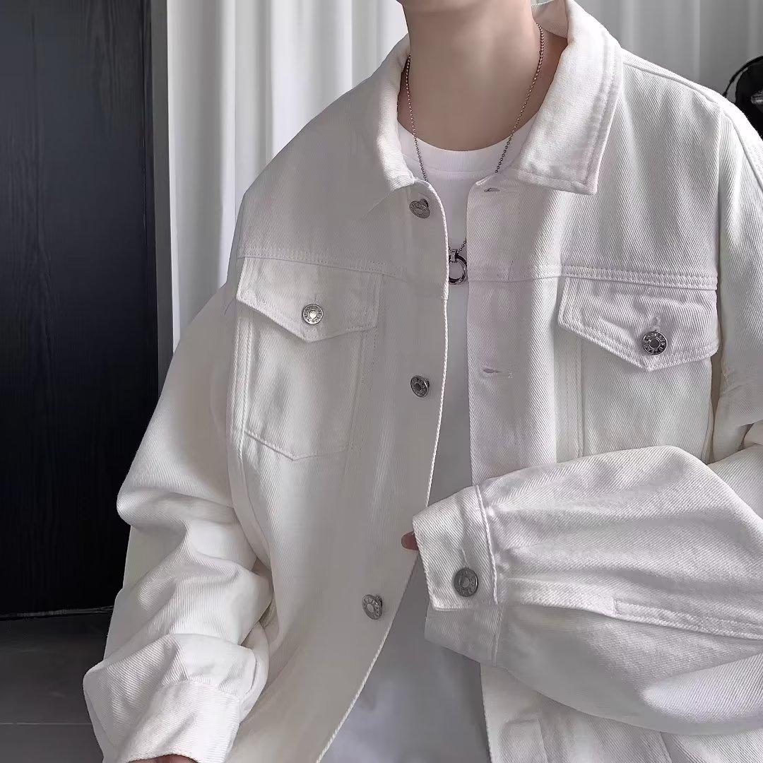 Abrigo vaquero blanco primavera 2024 estilo Hong Kong con top holgado que combina con todo estilo coreano chaqueta de trabajo informal de moda