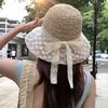 Sombrero de Paja para Mujer Nuevo Estilo Japonés Estilo Fresco Sombrero de Paja de Encaje Verano Viaje Sombrero Protector Solar Ala Ancha Sombrero de Playa Sombrilla