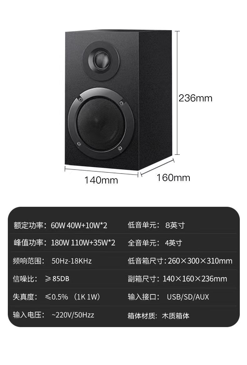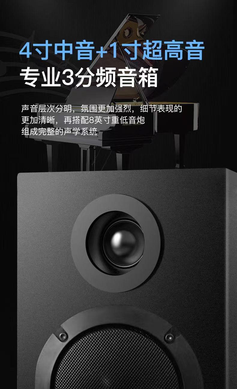 Xianke Audio Cine en Casa Audio de Madera Audio Bluetooth Alta Potencia Altavoz Grande de 8 Pulgadas Super Bajos Hogar