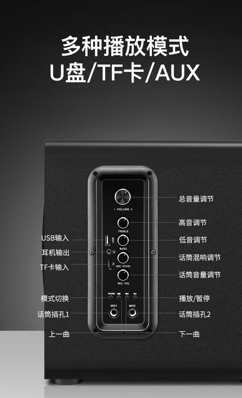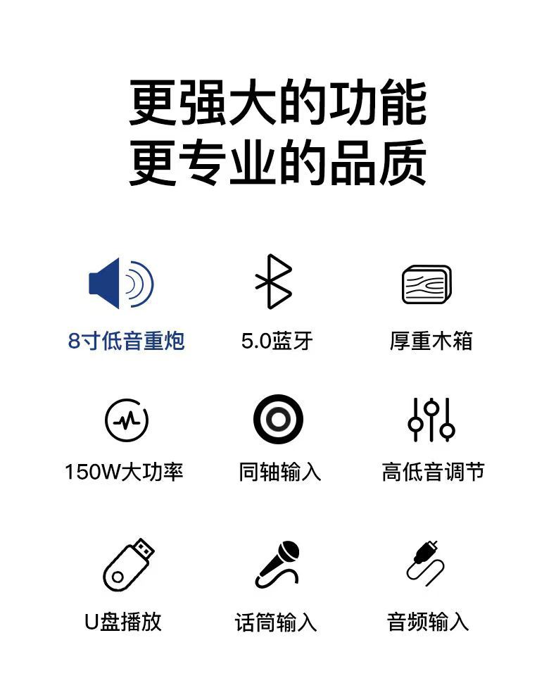 8-inch subwoofer, treble 2, midrange 4-inch horn 2