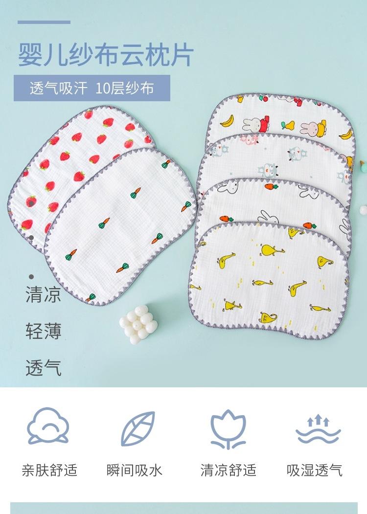 Almohada de nube de verano para bebé, gasa de diez capas, almohada para bebé recién nacido, toalla, almohada plana absorbente de sudor, almohada para niños